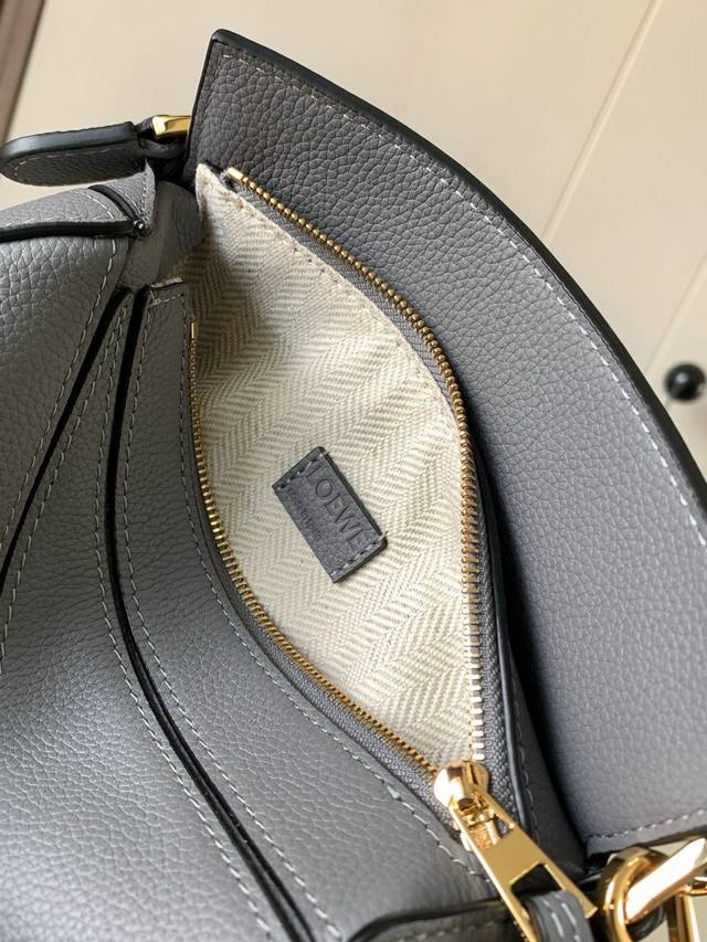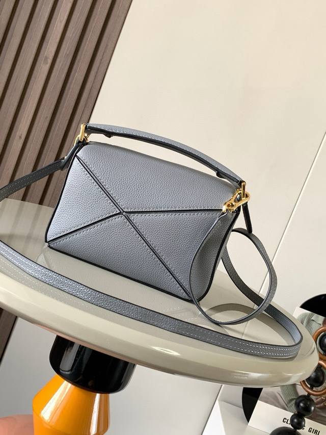 The popular geometric bag, the mini 18cm Puzzle handbag in genuine imported nappa calfskin, is the first handbag launched by Creative Director Jonathan Anderson for L0Ewe. Its rectangular shape and precise cutting techniques create the Puzzle's distinctive geometric lines. This mini version is crafted from classic calfskin leather. The mini Puzzle can accommodate a small vertical wallet, most phones up to 6.1 inches, and a sunglass case. It can be carried cross-body, on the shoulder, by hand, or by the top handle. The detachable shoulder strap makes the bag practical and practical, allowing you to carry your phone, small wallet, lipstick, and powder without any bulk. From now on, you can enjoy a relaxed and enjoyable life. Sizes: 18-12.5-8cm