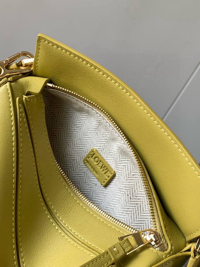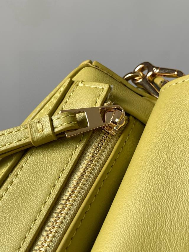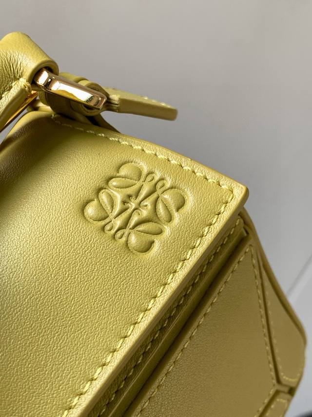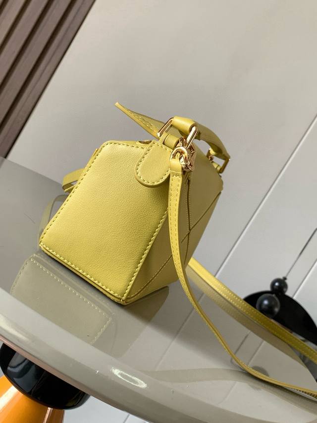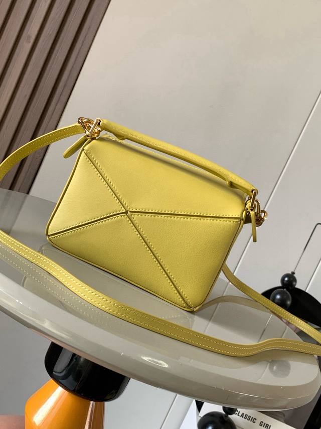 The popular geometric bag, the mini 18cm Puzzle handbag in imported nappa calfskin, is the first handbag launched by Creative Director Jonathan Anderson for L0Ewe. Its rectangular shape and precise cutting techniques create the Puzzle's distinctive geometric lines. This mini version is crafted from classic calfskin leather. The mini Puzzle can accommodate a small vertical wallet, most phones up to 6.1 inches, and a sunglass case. It can be carried cross-body, on the shoulder, by hand, or by the top handle. The detachable shoulder strap makes the bag practical and practical, allowing you to carry your phone, small wallet, lipstick, and powder without any bulk. From now on, you can enjoy a relaxed and enjoyable life. Sizes: 18-12.5-8cm. Style: 9016. Color: Bright Ochre Yellow.