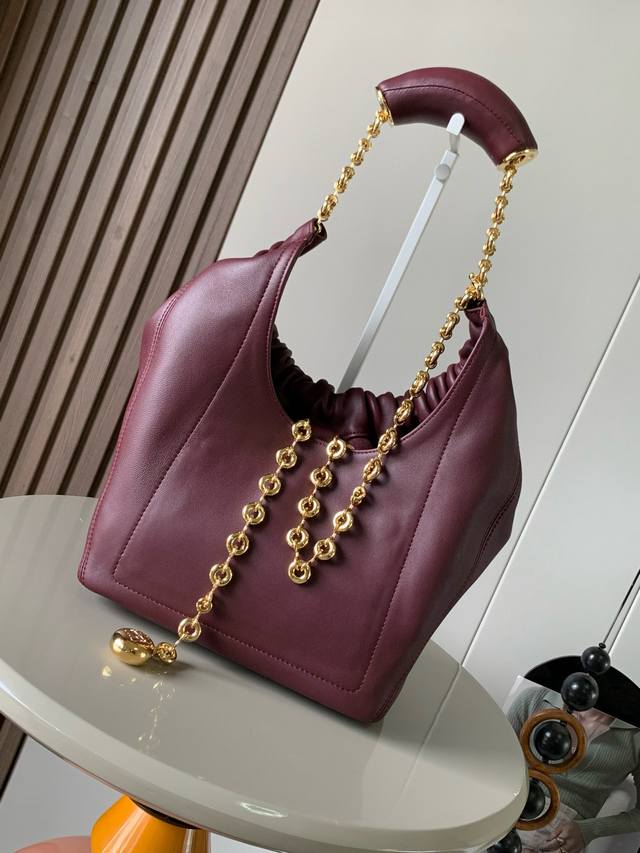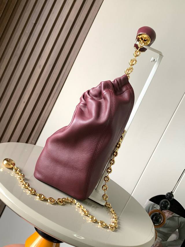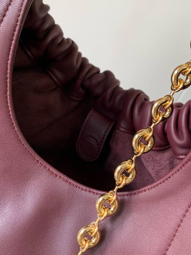 The Same Small Nappa Leather Squeeze Handbag As The Celebrity Is A New Exquisite And Soft Handbag. The Newly Released Squeeze Handbag Is Made Of Soft And Silky Mellow Nappa Lambskin. The Unlined Structure Effectively Reduces The Weight Of The Bag And Looks Lighter. The Crescent-Shaped Bag Opening Is Closed With An Elegant Ruffle, Creating A Relaxed And Casual Attitude. Another Highlight Of This Bag Is The Ergonomic Squeeze Airbag Handle With An Exquisite Donut Chain Made Of Brass. The Length Can Be Adjusted Through The Chain Link Or An Extension Chain Can Be Added To Achieve Different Carrying Methods Such As Hand-Carrying, Shoulder Carrying, And Cross-Body Carrying. The Airbag Handle Can Be Freely Slid To Improve Comfort. An Anagram Pebble Pendant Is Embellished At The Bottom Of The Chain, Adding Smart Details To The Bag.