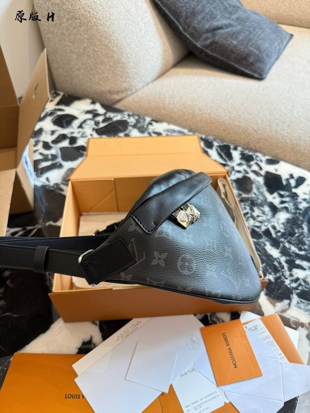 This Discovery waist bag is crafted from Monogram Eclipse canvas, combining casual chic with modern functionality. Its ergonomic shape and adjustable strap allow it to be worn around the waist, over the shoulder, or casually across the chest. Zippered pockets on the front and back provide easy access to your phone, cards, and keys.