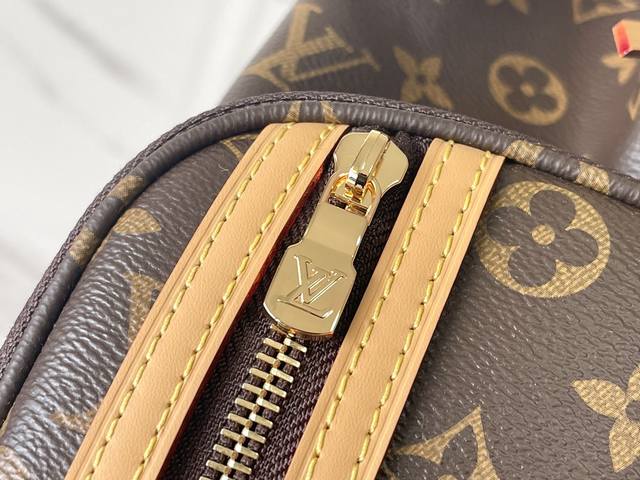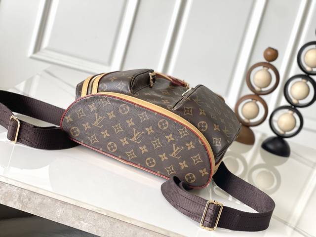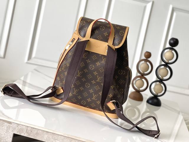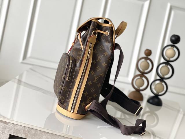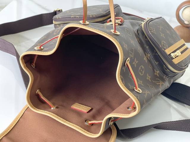 This Monogram canvas backpack, M40107, is named after the Bosphore, a strait that flows through Istanbul. It features multiple pockets for phones, portable music players, newspapers, and magazines. Dimensions: 31 x 38 x 11 cm.