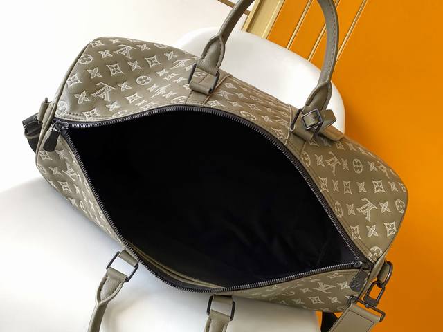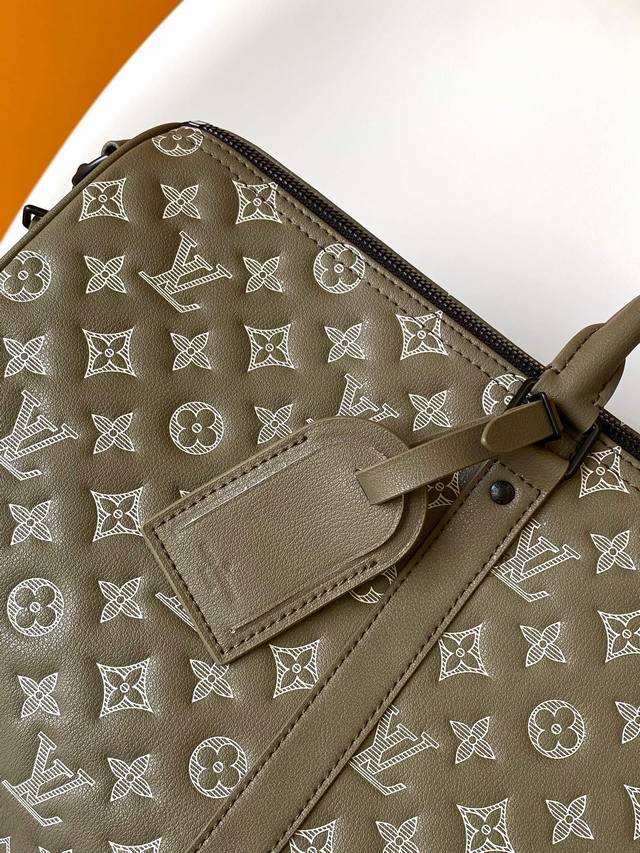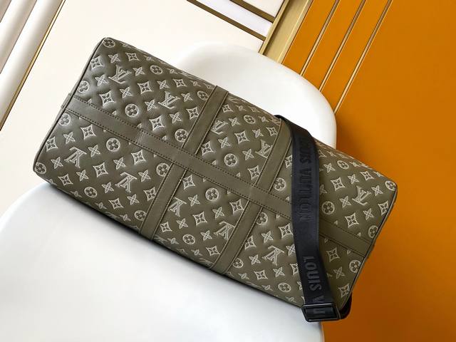 Top Original Dynamic Chip M12504 This Keepall 50 travel bag is made of calfskin Monogram Shadow with an embossed two-tone design, giving it a modern feel. Its compact size allows it to be used as carry-on luggage, and a zippered pocket has been added to the spacious interior. It can be carried in multiple ways thanks to two rolled-up upper wings and a unique detachable shoulder strap. 50.0 X 29.0 X 23.0 cm (L x H x W) Olive Green Lambskin Monogram Shadow Embossed Leather Waist Belt Fabric Lining Black Metal Hardware Cab Dimensions Double Locking Hinges Latch Removable Identification Tag Zippered Interior Pocket Shoulder Straps: Detachable and Adjustable Shoulder Strap Drop: 36.0 cm Maximum Shoulder Strap Drop Height: 50.0 cm