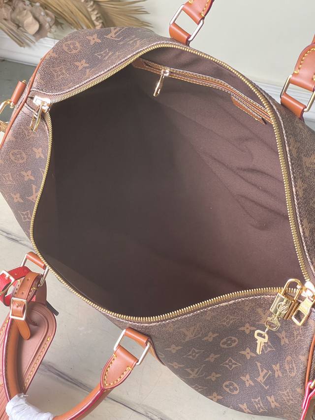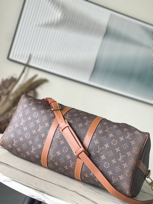 Top Original M11541 This Keepal Bandouliere50 Travel Bag Is From The Autumn And Winter Fashion Show. It Is Made Of Monogram Dust Coated Canvas With Old Cowhide Leather And Metal Parts To Show Pharrell Williams' Respect For The Brand's History. Marque L.Vuitton Deposee Decoration And Tassel Leather Brand Name Perfect And Exquisite Details Size 50 29 23 Cm