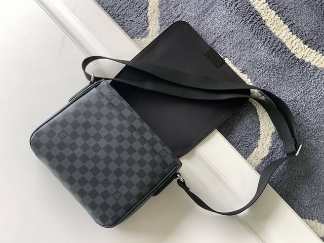 Top original M41213 Black grid District small District small handbag Small, exquisite classic appearance and Damier Graphite canvas material, men's PVC large bag Black grid cover flap bag shoulder bag casual bag practical and elegant handbag, the ideal companion for daily life size 27 23 8Cm