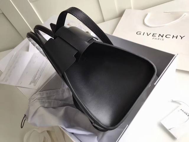 Givench Horizon plain smooth leather double handles and long shoulder strap with custom gold-plated hardware built-in movable handbag Oh, detachable and super practical