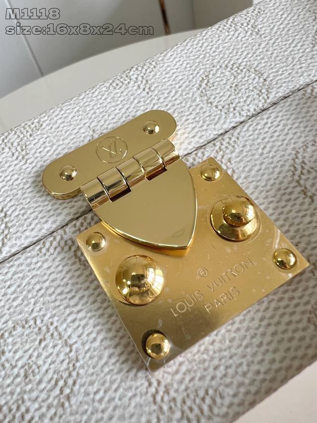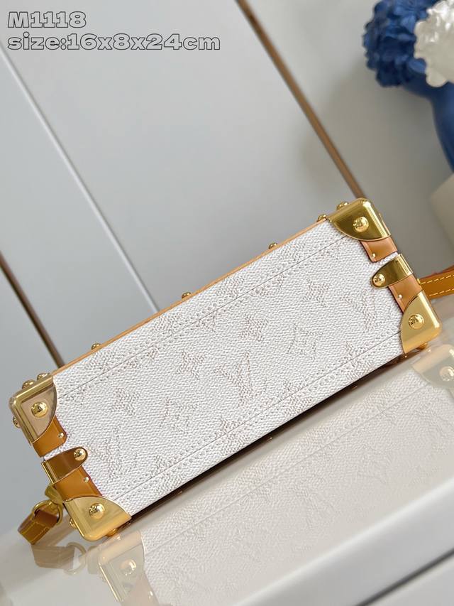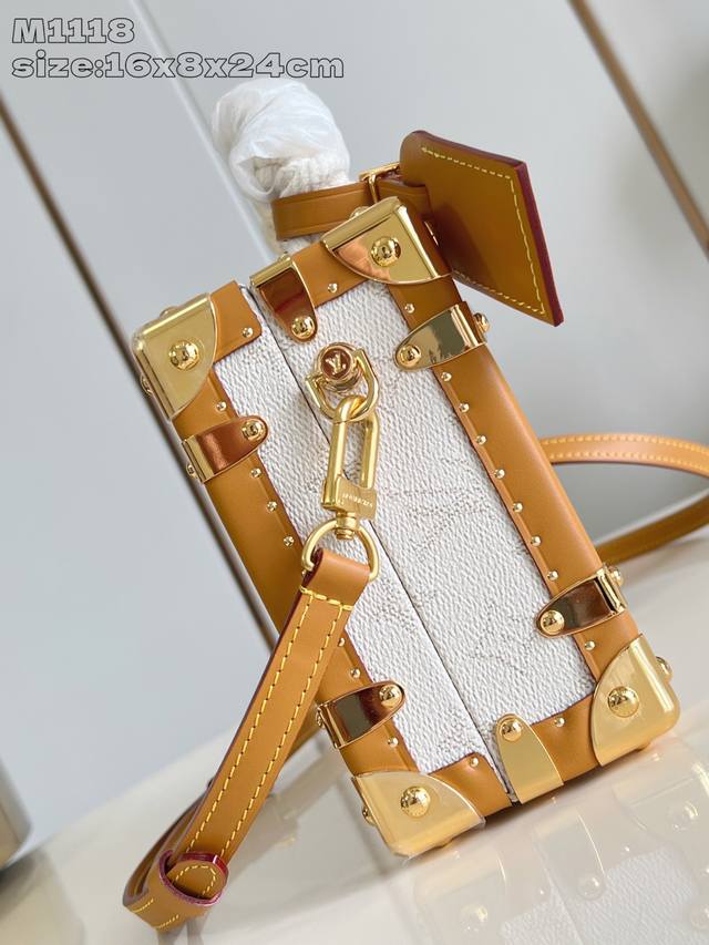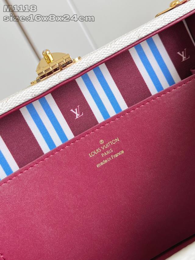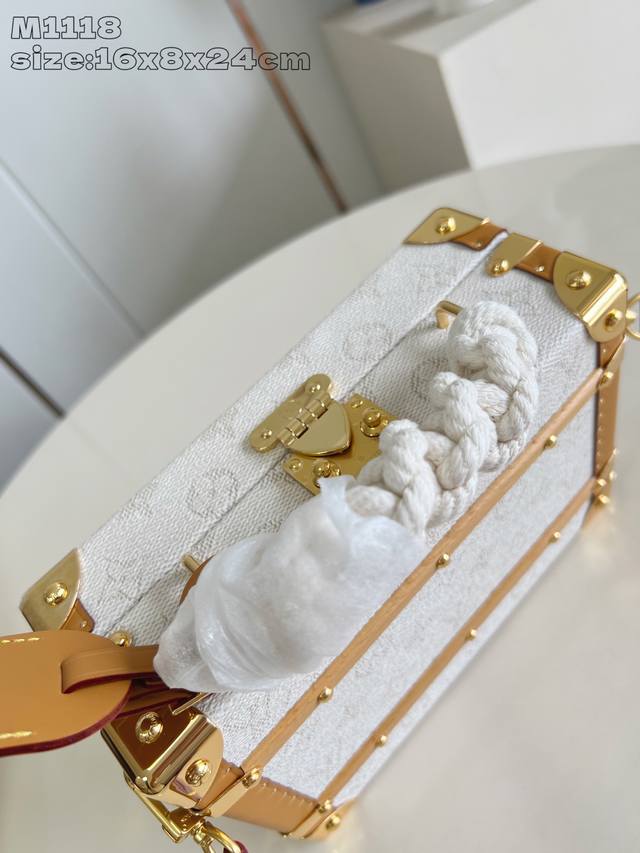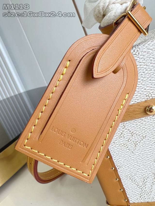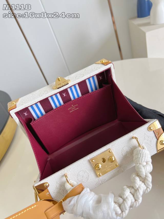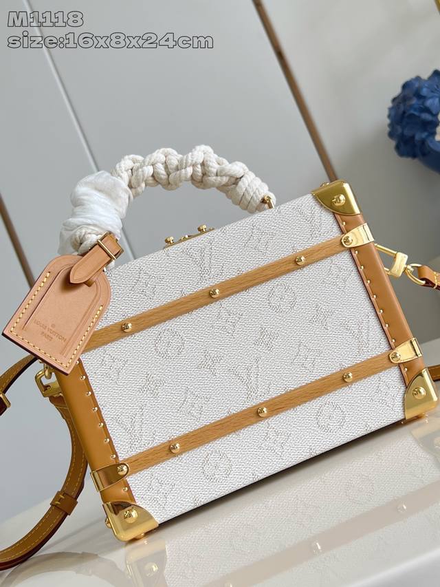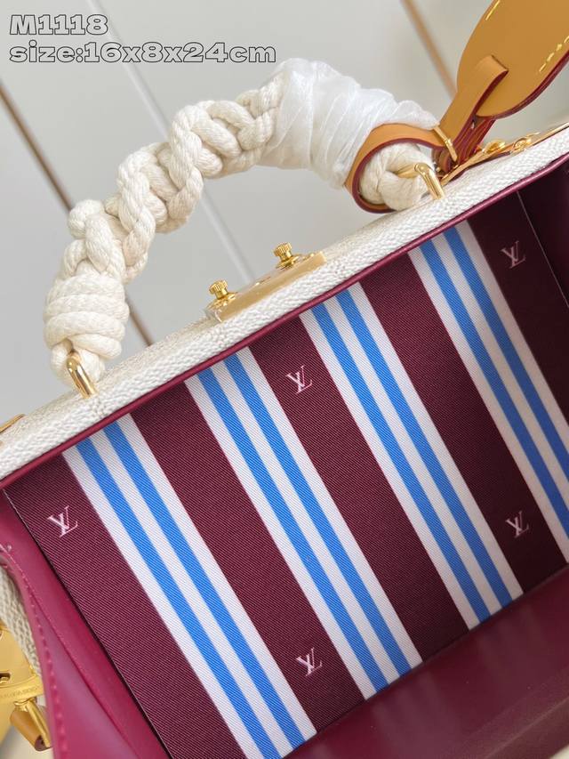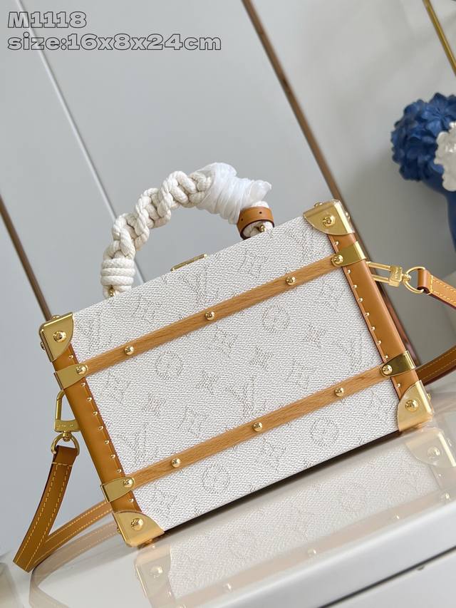 Top-grade original M1118 white flower M14440 This Handle Trunk bag is crafted from supple Monogram Heritage canvas with cowhide trim. Its rope handles evoke a ship's rope design. The twill lining features a striped pattern, showcasing nautical flair and refined detailing, complementing the ready-to-wear shirts from the same collection. 16.5 x 8 x 24 cm (H x W x L)