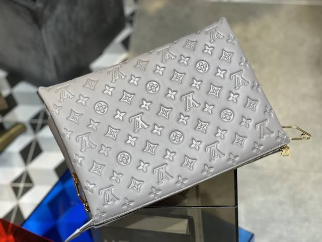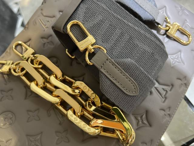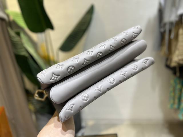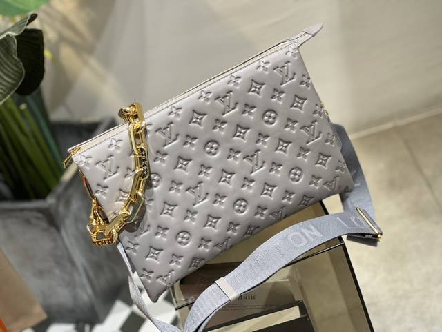Top-grade original M20771 M57783 This Coussin medium handbag is crafted from Monogram-embossed fluffy lambskin leather, accented with hardware and interior compartments for a comfortable, body-hugging design. A wide fabric shoulder strap enhances all-day crossbody wear, while a detachable thick chain allows it to be worn underarm or as a baguette. Size: 34 x 24 x 12 cm