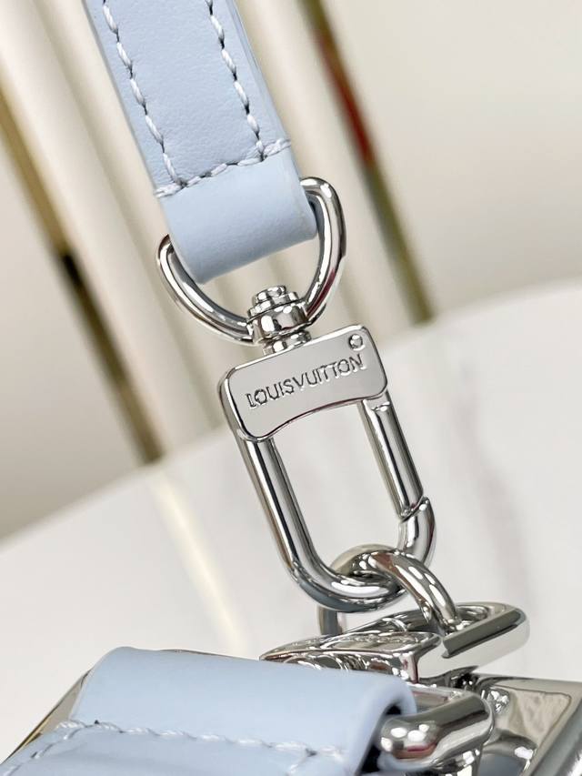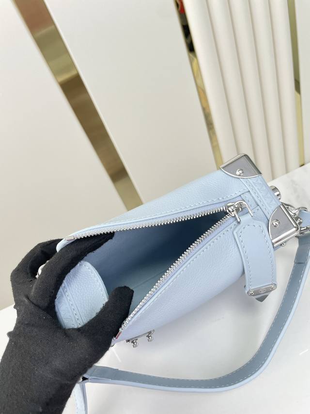 Top-Grade Original Single-Color, Variable-Code Chip M25067 Light Blue Dimensions: 18 12.5 8 Cm Side Trunk Full-Leather Box Bag