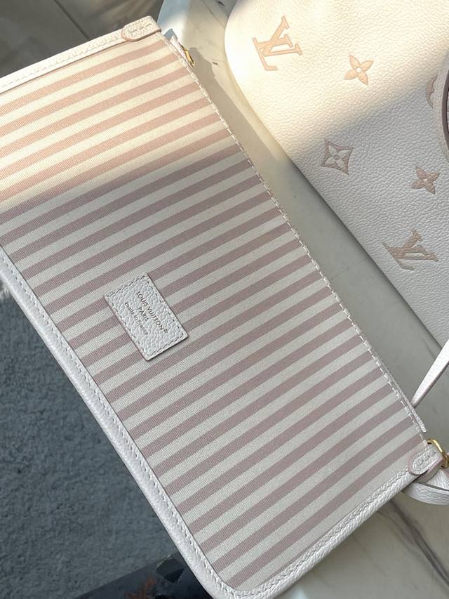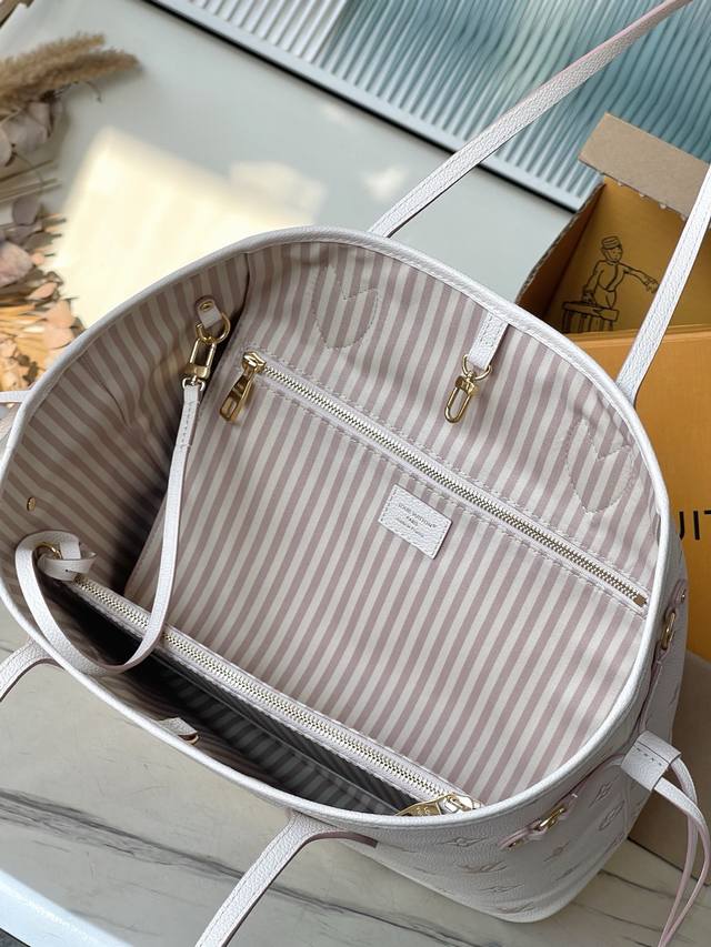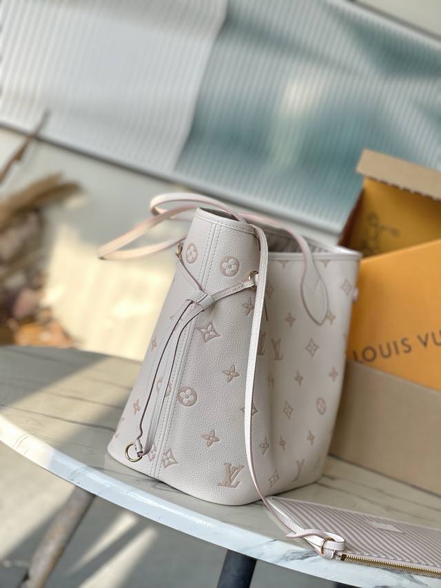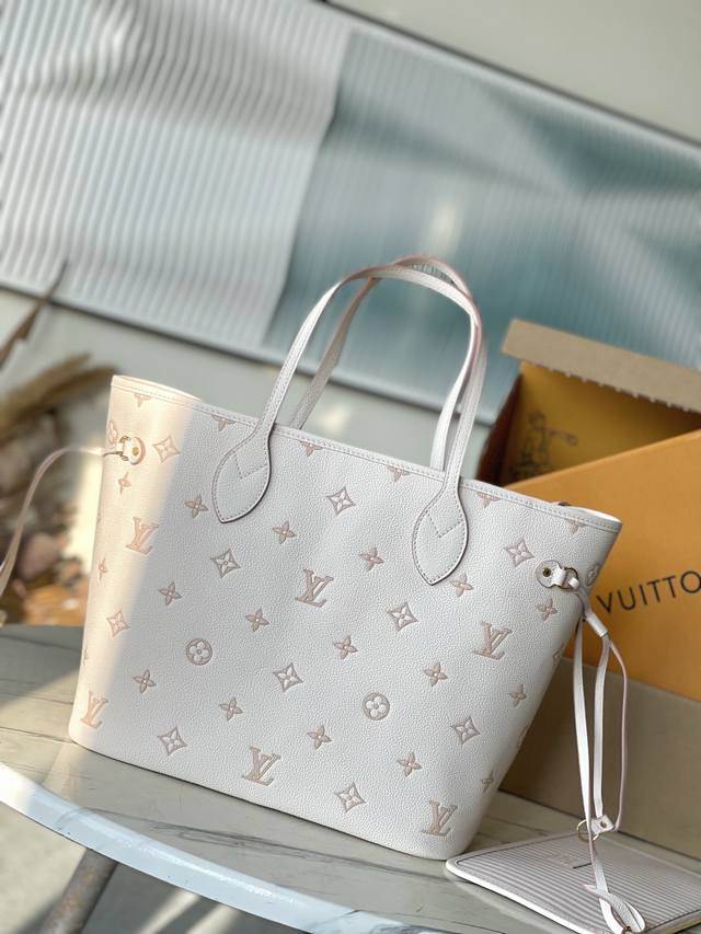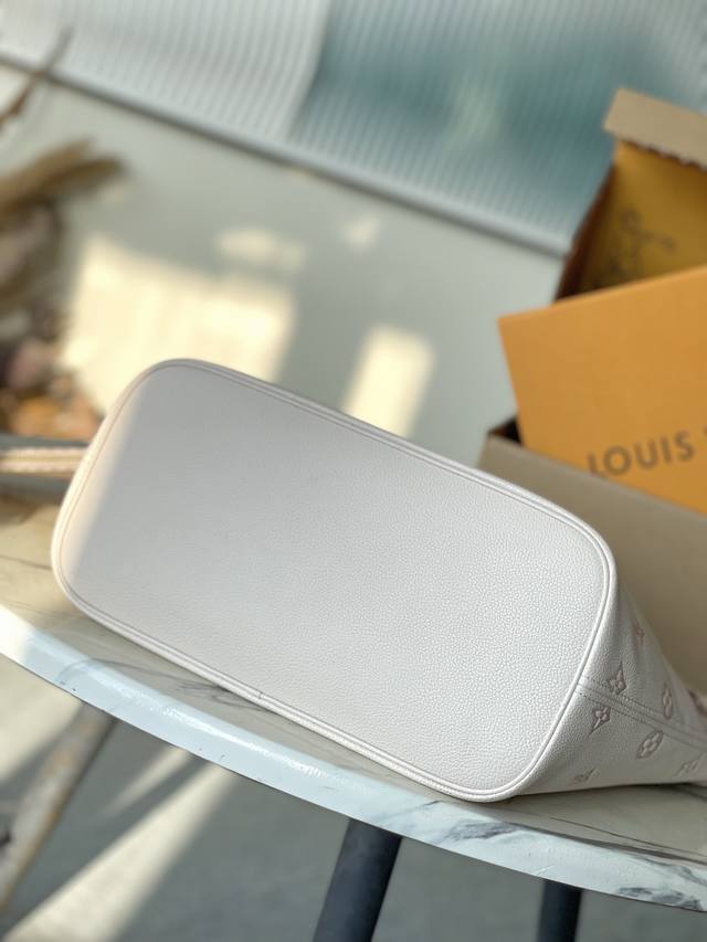 Top-grain leather, original M14285, cream-colored silk-screen print. This Neverfull Mm handbag showcases the brand's signature Monogram Empreinte leather with updated tonal silhouettes, creating a practical yet refined look. Generous enough to hold a laptop and other daily essentials, it comes with a removable contrast-print textile pouch. Gold hardware creates a refined look. Dimensions: 32 x 29 x 17 cm