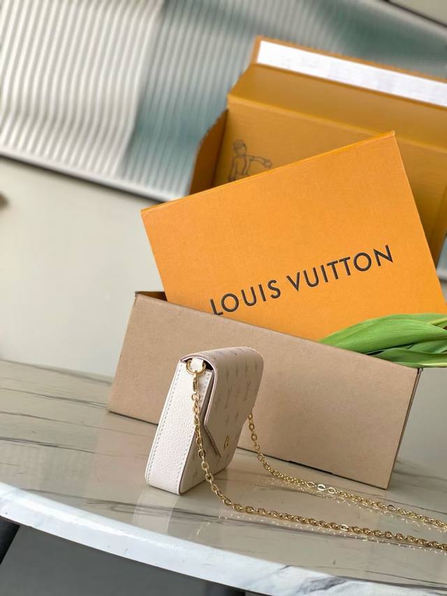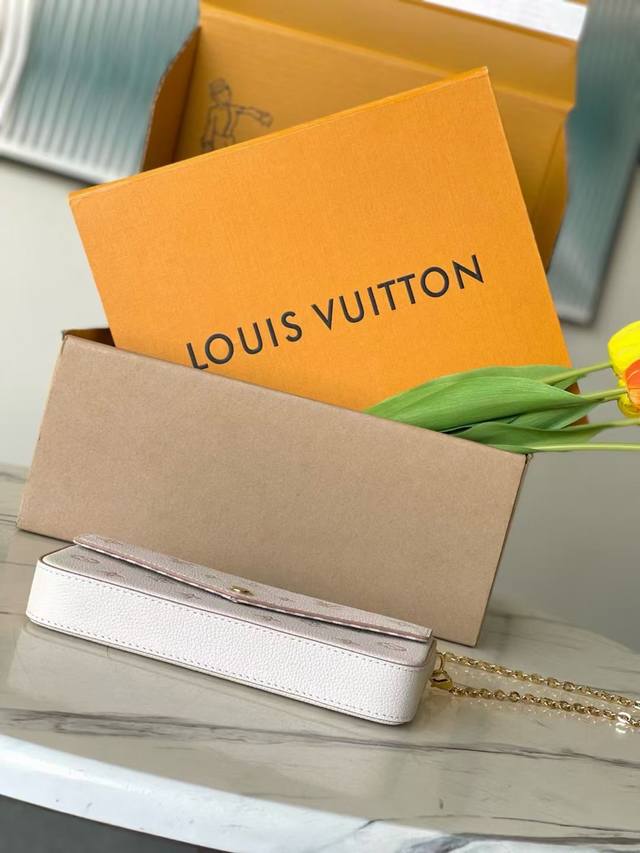 Top-grain leather, original M14968. This Pochette Felicie chain bag features a two-tone leather body and detachable pockets with a zipper and card slots. It features a reimagined Monogram pattern. The dazzling chain offers versatile carry options, elegantly transitioning from day to night. Dimensions: 21