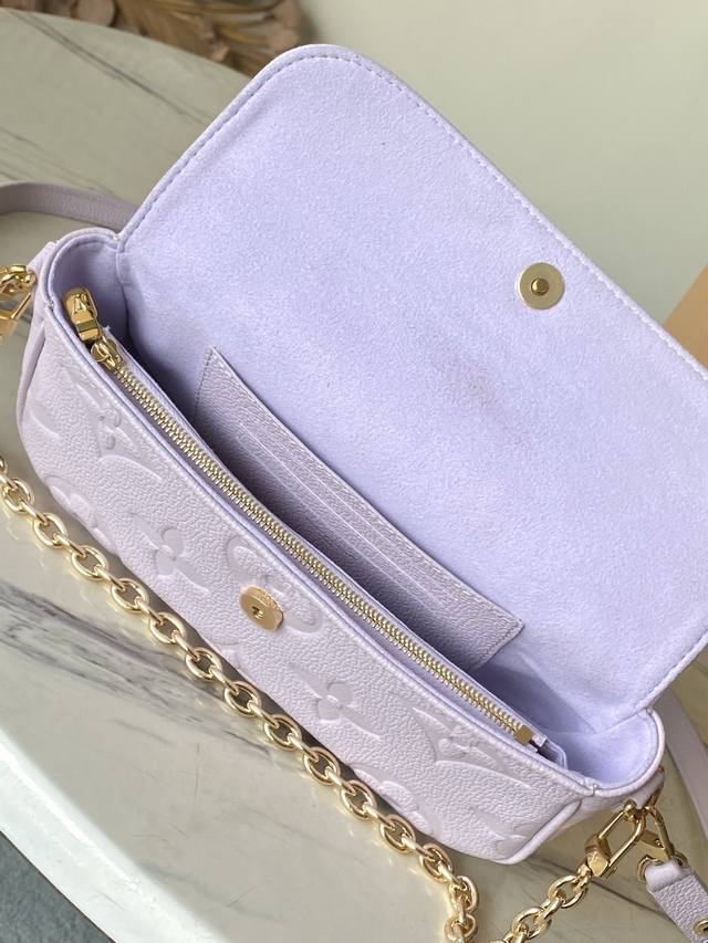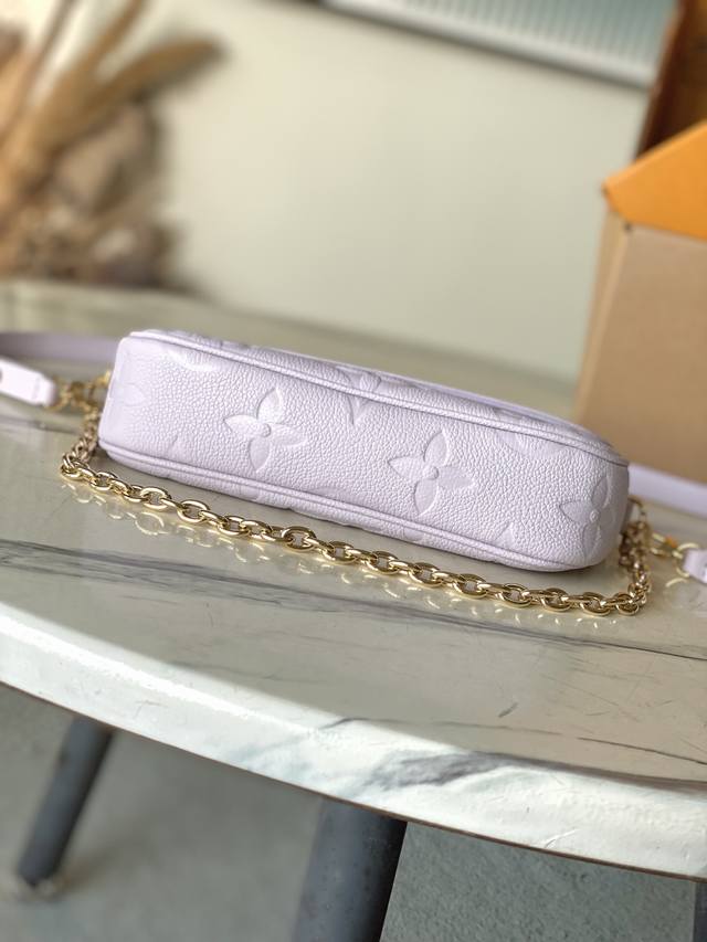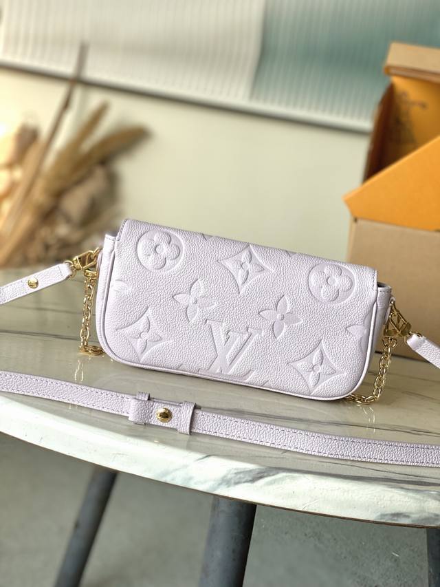 Top-grain leather, original M25714. This Wallet On Chain Ivy handbag is crafted from classic Monogram Empreinte leather, inspired by the Sac Recoeta handbags of the 2000s. It features lustrous hardware and a detachable woven chain. Its compact size includes multiple pockets and card slots, perfect for everyday storage needs. Dimensions: 23.5 x 12 x 4.3 cm