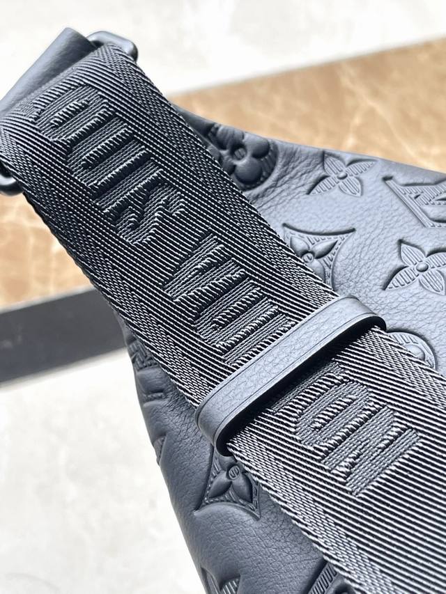 Top-grain leather, original M47058. This Rush waist bag is crafted from Monogram Shadow cowhide for a close-fitting silhouette. Its zippered front pocket provides easy access to your phone, keys, and cards. The adjustable shoulder strap, secured with a sliding hook, allows for easy waist, shoulder, or crossbody wear. The leather handles add a handheld option and a sporty feel. Dimensions: 30