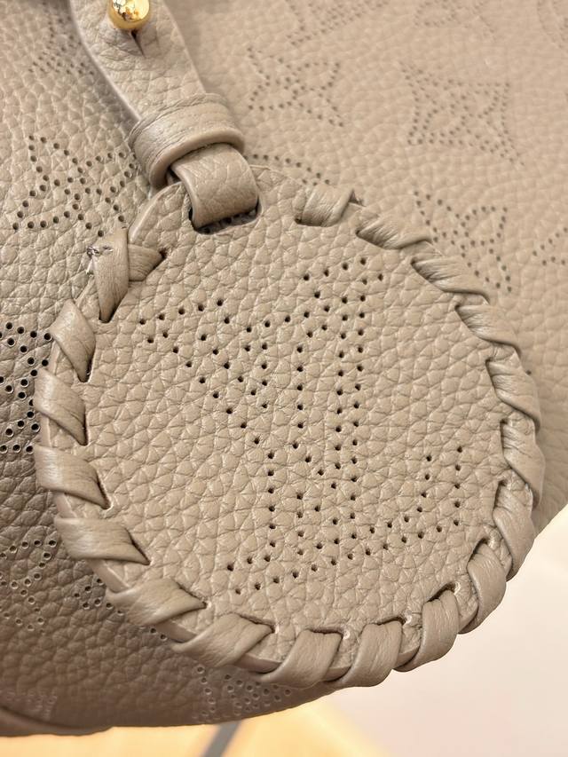 The Blossom small handbag is made of perforated cowhide leather, presenting a casual style and practical functions. The inner compartment is equipped with a detachable zipper pocket to easily accommodate daily necessities. The handle is convenient for hand or elbow carrying. The detachable and adjustable shoulder strap allows for shoulder and crossbody carrying. Size: 20X20X15cm