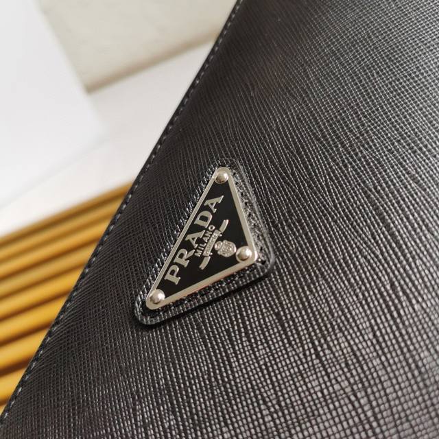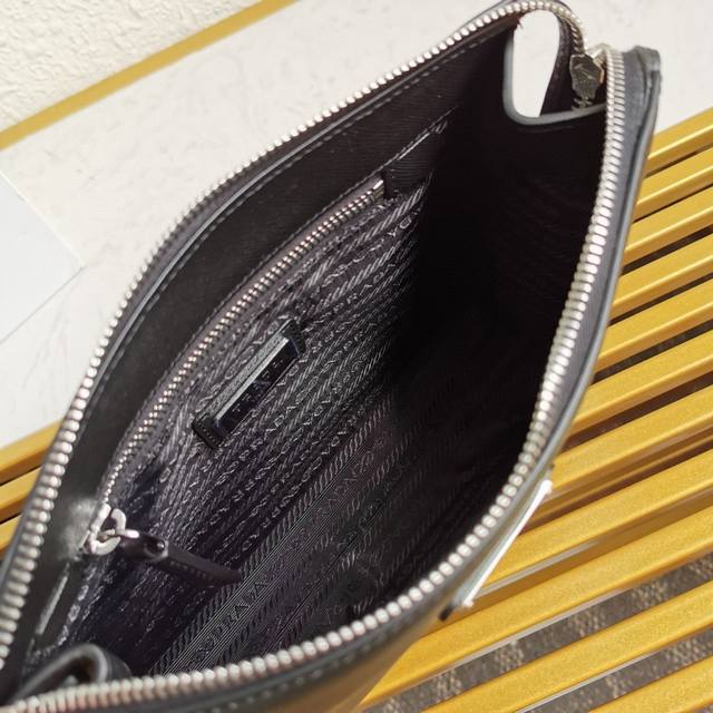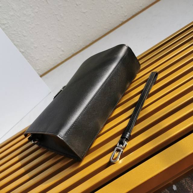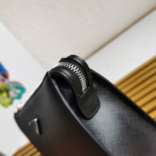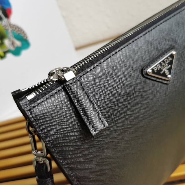 Top-quality original classic men's clutch bag 2Ne009 has arrived! Made of imported Saffiano leather, with metal hardware, one zippered compartment, one zippered inner pocket, fabric lining, detachable leather shoulder strap, internal logo plaque, and external metal logo. This Saffiano leather men's clutch bag features the classic triangular logo, a wonderful blend of classic and trendy design. Gentlemen, grab yours now! Dimensions: Length 24cm, Height 18cm, Width 6.5cm.