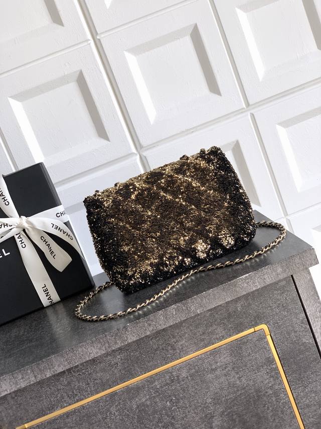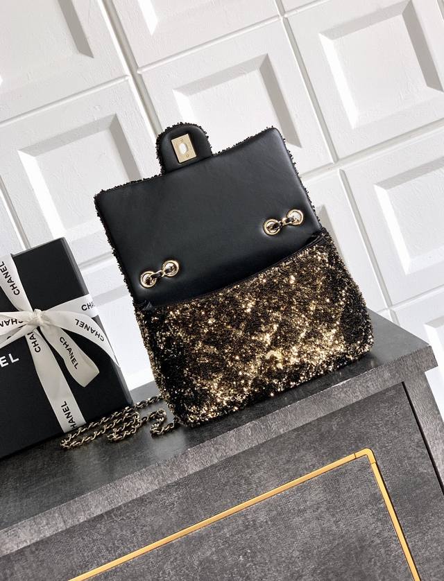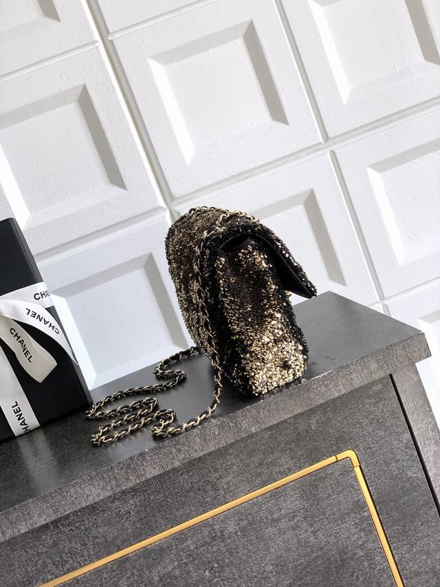 Top-quality original gold betel color, 6171Ohanel 25B dense sequins, shape Cf super-shiny sequins sequins bag pre-order autumn and winter filter, So Black street-cool, the real thing is simply stunning, super rare popular sequins with super cost-effectiveness. The most worthwhile bag to buy this season. The color sequins splicing is glittering and lovely, which infinitely amplifies its charm. Elegance and fashion are synonymous with it. It is also suitable as an evening bag. It is a bag that can be treasured for a lifetime. 20Cm6171
