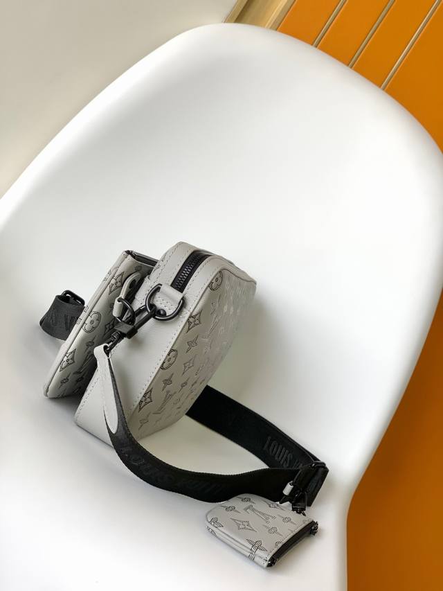 Top-quality original, individual seller, real photos. M46603 Grey, M46602 Black, M46604 Blue Trio messenger bag, crafted from Monogram embossed cowhide leather. The zippered front pocket and the small coin purse on the shoulder strap are detachable, enhancing the functionality along with the main compartment. The detachable and adjustable jacquard fabric shoulder strap features the brand logo, providing a comfortable shoulder or crossbody carrying experience. Dimensions: 25