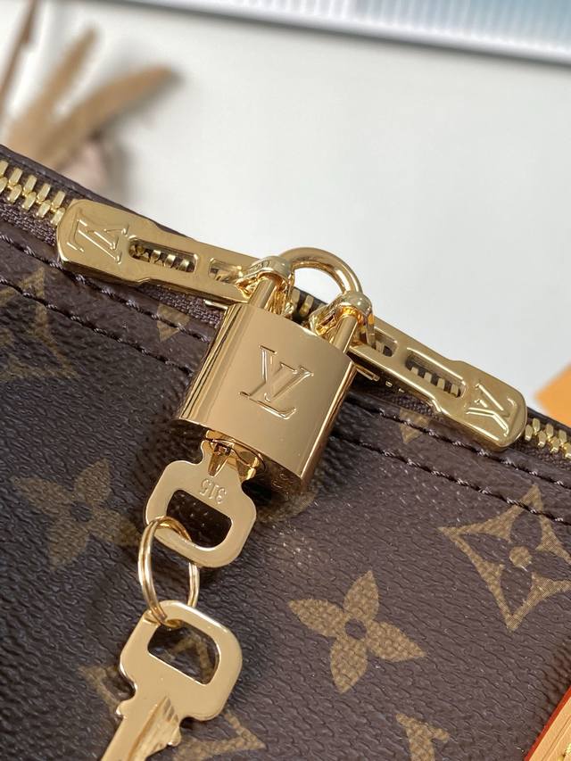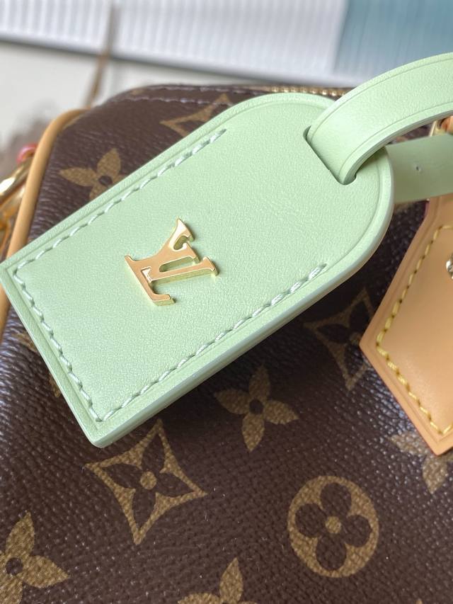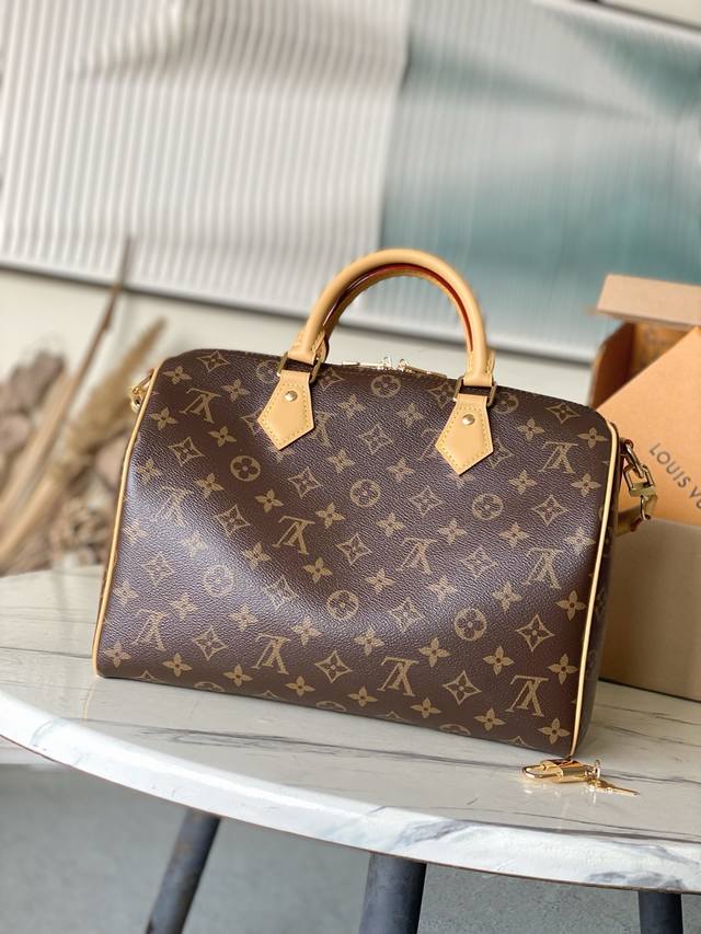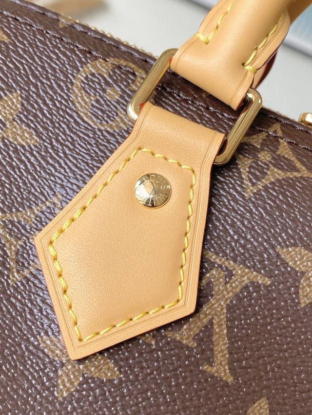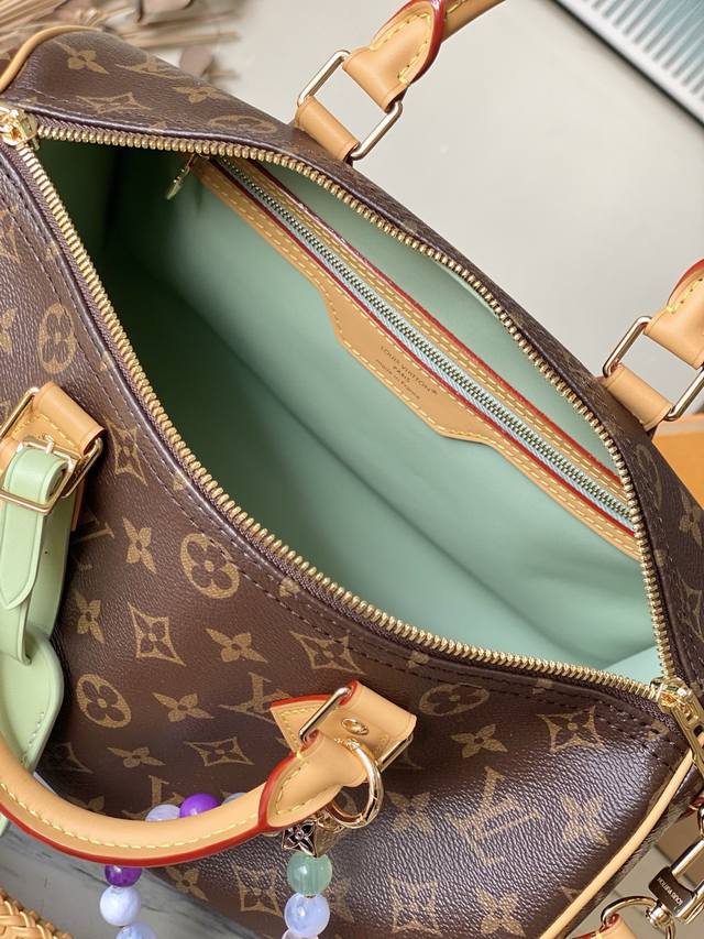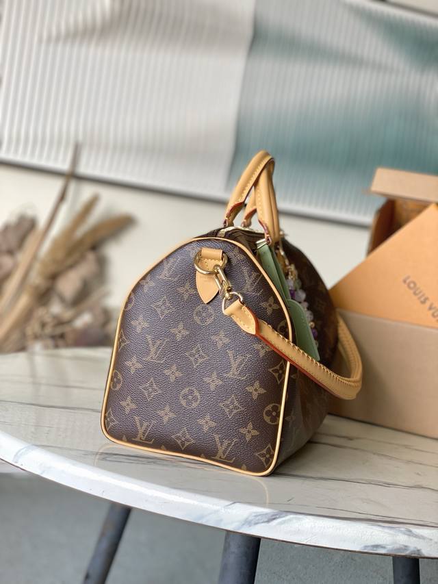 Top-quality original M15107 This Speedy Soft 30 Lucky bag features Monogram canvas with a woven leather trim. Removable jewelry-like embellishments, contrasting lining, and hardware add sophisticated detailing. The spacious design easily accommodates a tablet and everyday essentials. Dimensions: 30