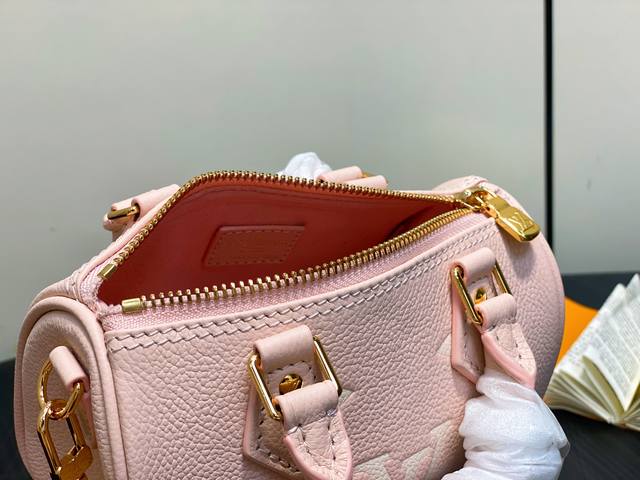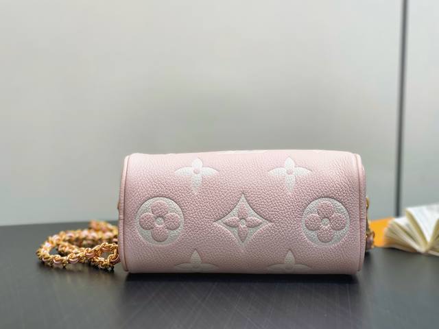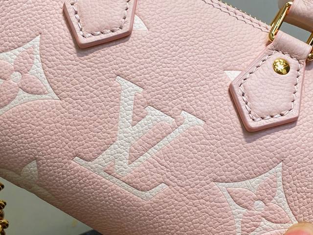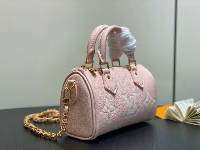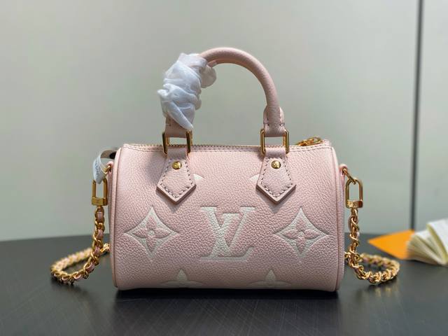 Top-quality original M82450 Milkshake Powder M14226 Full Leather Speedy Pillow Bag. This Nano Speedy handbag is crafted from the brand's signature Monogram Empreinte leather, creating a modern, compact silhouette. The soft hue accentuates the striking hardware. A detachable chain strap offers versatile carrying options. Organize your everyday essentials from day to night. 10 x 7.5 x 16 cm (H x W x L)