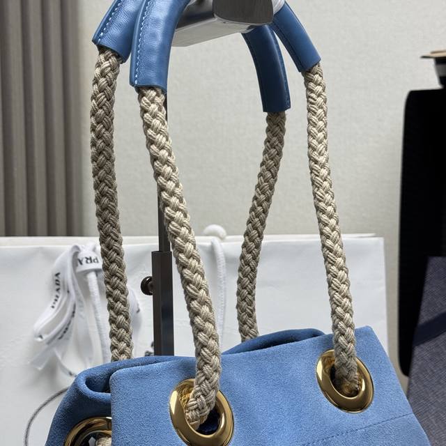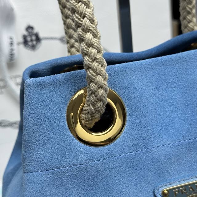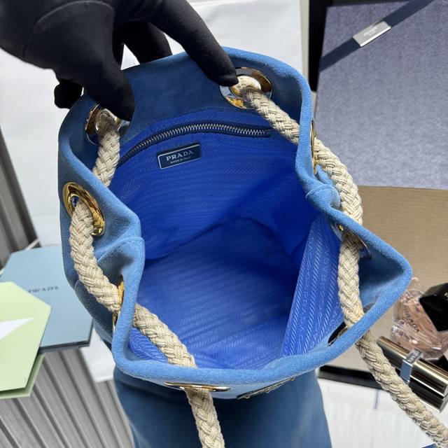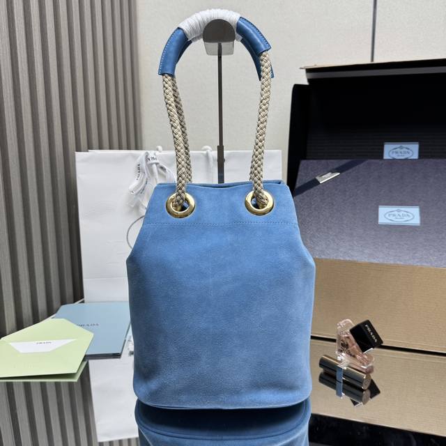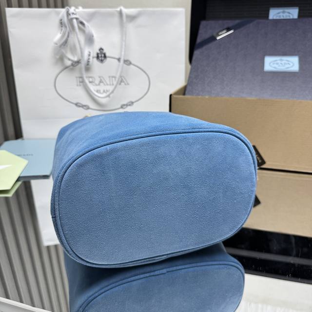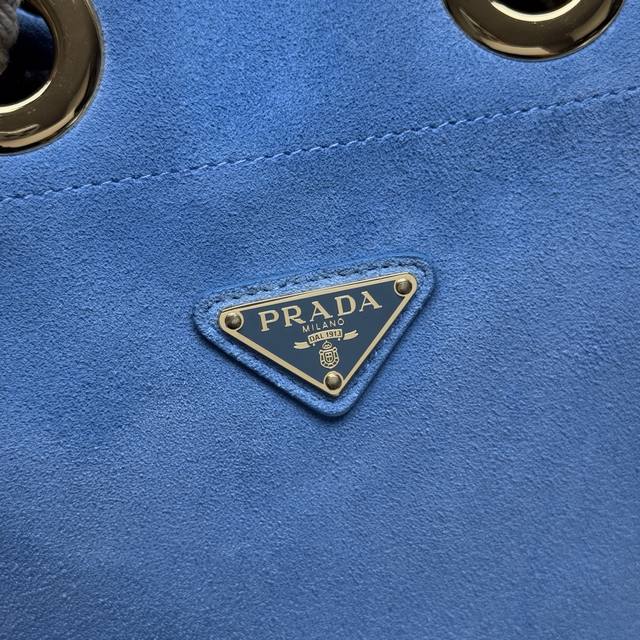 Top-quality original new bucket bag 1Be082 suede. This Re-Nylon handbag is designed with imported suede and calfskin. The unique combination adds a charming touch. The sliding rope handle highlights the bag's versatility, allowing it to be carried by hand or across the shoulder. Premium hardware. With its spacious capacity, it's a casual and stylish choice, making it a timeless favorite. Hurry and get yours! Dimensions: Length 23.5cm x Height 28cm x Base 16.5cm