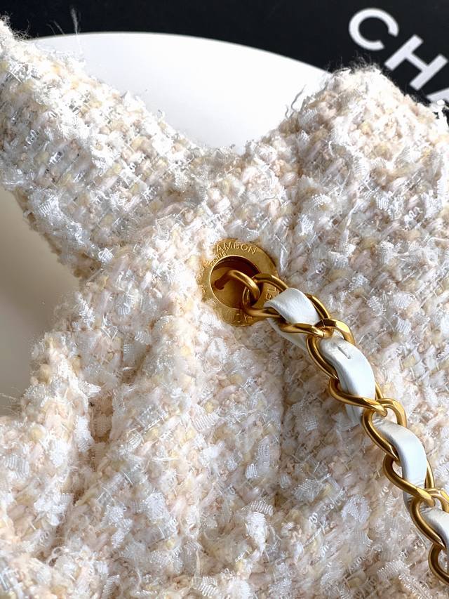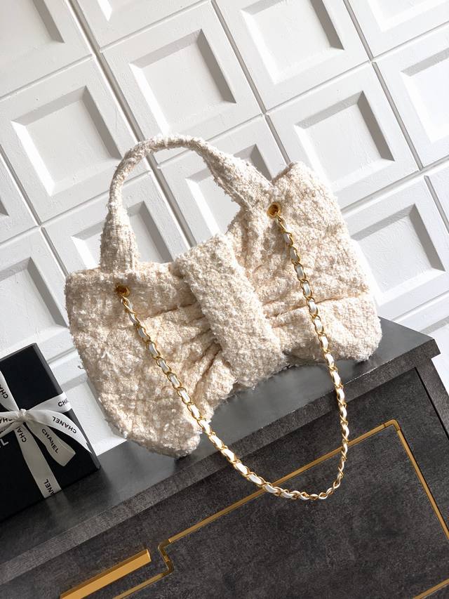 Top-quality original off-white tweed Ohanel bow bag design and style analysis. Diverse materials, ever-changing styles, and a rich variety of material choices: In addition to denim, there is also a black original Antiba waxed lambskin version, with superior texture, a natural luster, and clear, layered surface texture. Compared with traditional lambskin, it effectively prevents scratches and also has a certain degree of water resistance, allowing the bag to maintain its perfect condition in various environments. Practical aesthetics, everyday elegance. Despite its charming and exquisite appearance, practicality and capacity are perfectly balanced. The interior space is reasonably designed to accommodate mobile phones, keys, cosmetics, etc. The bag's size is moderate, neither too large and bulky nor too small and unusable, making it an ideal choice for modern women's daily outings or evening events. Whether paired with casual wear or formal dresses, it easily enhances the overall sophistication of the look. Brand heritage, modern interpretation! Dimensions: 29