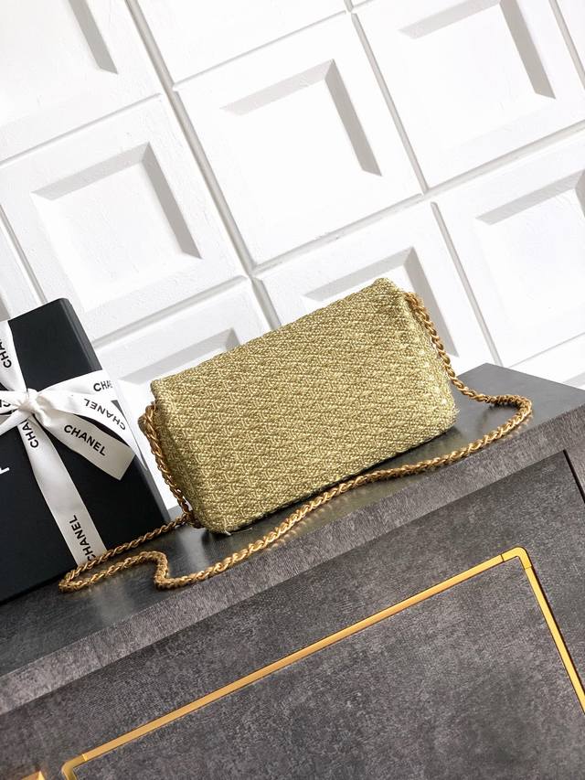 Top-quality, original Ohanel 6171, a newly crafted 25S woven flap bag. This runway model features a genuine sheepskin lining! Braided Lurex & Silver-Tone Metal. Reference numbers: As5279, B18970, Nacxx! This chain bag! The classic CF and delicate chain design are stunning! The exquisite weave not only accentuates a girl's aura of wealth but also elevates her overall elegance. It's simply irresistible! It's spacious enough for everyday essentials and can be worn crossbody or over the shoulder