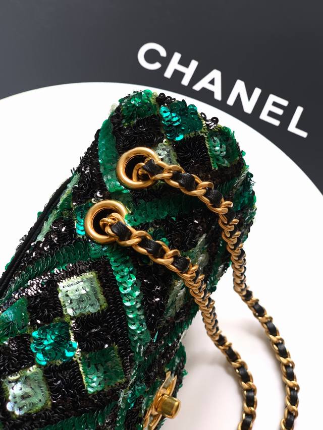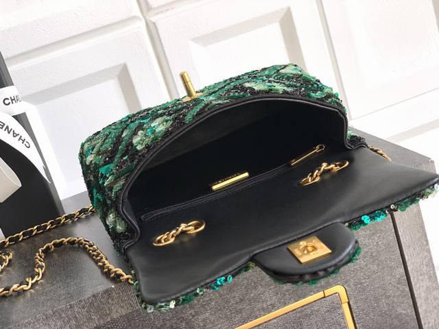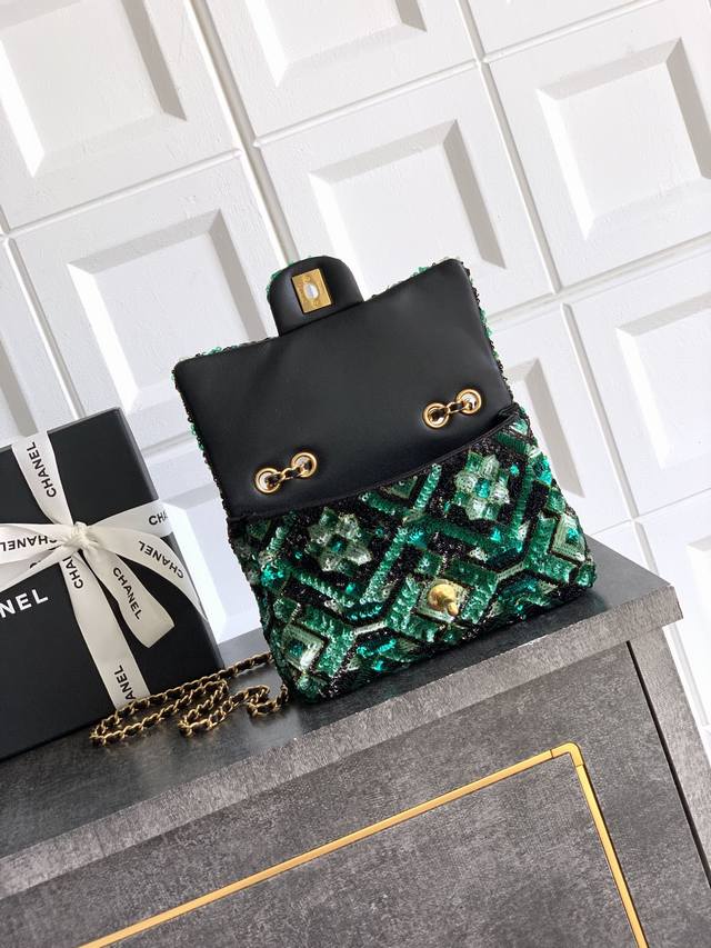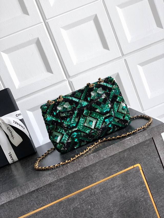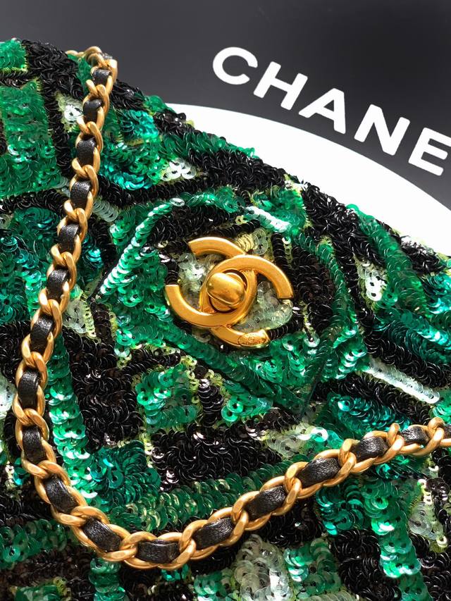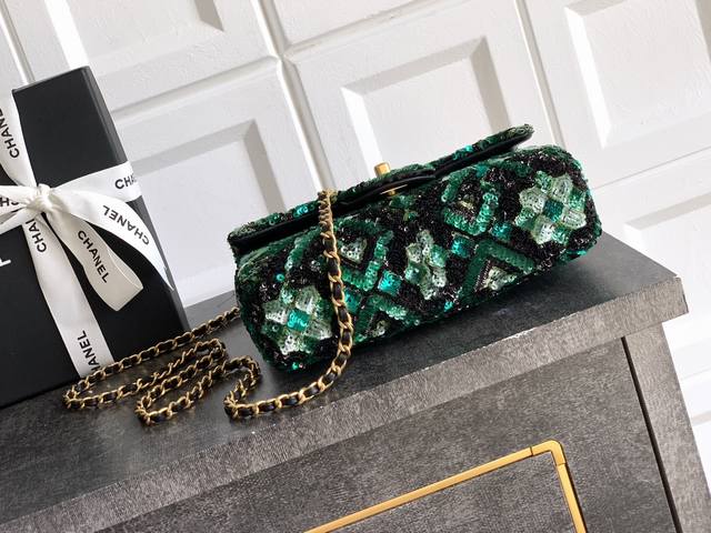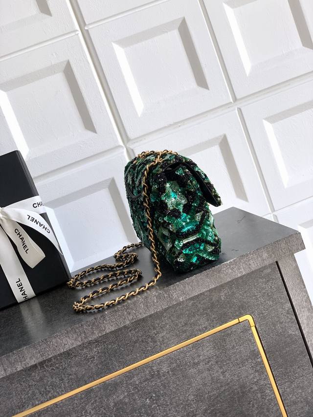 Top-quality, original Ohanel emerald beaded Cf, a truly luxurious flower, with embroidered beaded sequins. Large Mini. This 21-year-old handmade collection features a truly luxurious flower. Gorgeous sequin embroidery! Intricate pattern design, a stunning emerald colorway, and rich, opulent craftsmanship. Every detail is breathtaking. The large Mini size can be worn as a shoulder bag or clutch, making it the perfect evening bag. A must-have. Size: 20cm