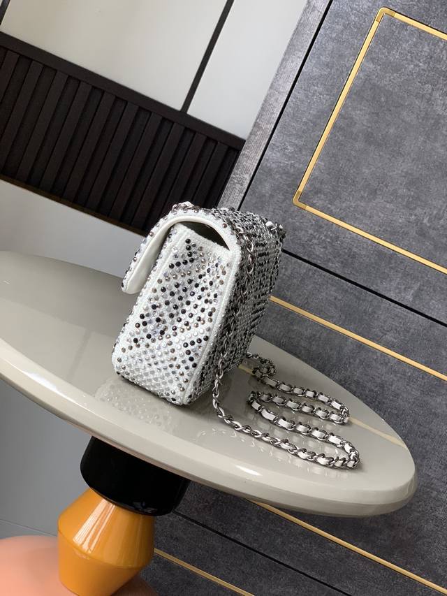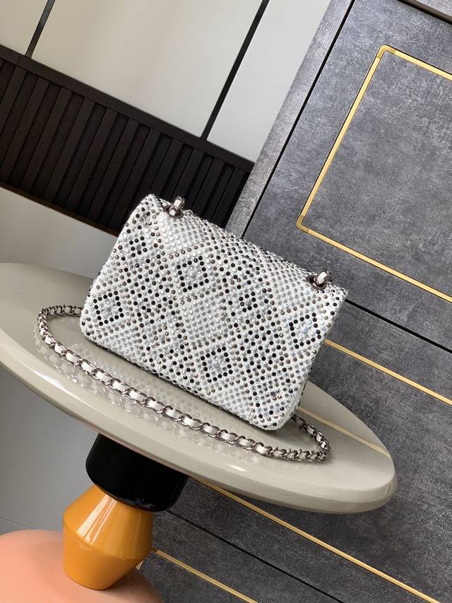 Top-quality original order shipped! Mini Black Diamond Ohane CF, a limited edition, full-diamond CF. It's out now, and one bag is hard to come by. The development was incredibly challenging, and it's truly dreamy! The full-diamond CF looks like stars fallen to earth. Each diamond exudes a luxurious luster. The black and white tones are deep and mysterious, and paired with the shimmer of the rhinestones, it's like the brightest star in the night sky. Elegant yet delicate, every angle of the bag exudes beauty. Size: 20cm