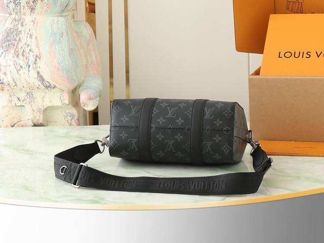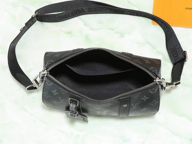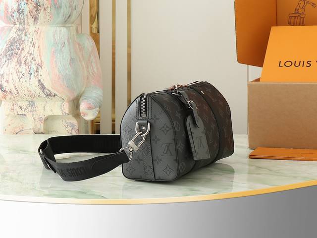 Top-quality original, original, and original photo. The Speedy Keepal travel bag from the Black Flower Chip collection condenses the classic design into a trendy urban handbag. The side design playfully depicts a reversed Monogram pattern, subtly echoing Kim Jones's 2018 Upside Down collection. The Monogram Eclipse canvas body features a detachable shoulder strap for effortless carrying. Dimensions: 27 x 17 x 13 cm (