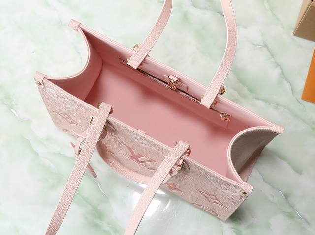 Top-quality original, original, and real-life photos. M46542 Pink Silkscreen Square Bag, M45595 Pink Gradient, new for the season: the Onthego Medium Handbag. This Onthego Medium Handbag is crafted from Monogram Empreinte leather, featuring a gradient Monogram pattern that diffuses throughout the bag and dissipates at the handles. The medium size offers ample storage for a laptop and other essentials. The rolled leather handles and long strap allow for easy carry by hand or on the shoulder. Details: 35 x 27 x 14 cm.
