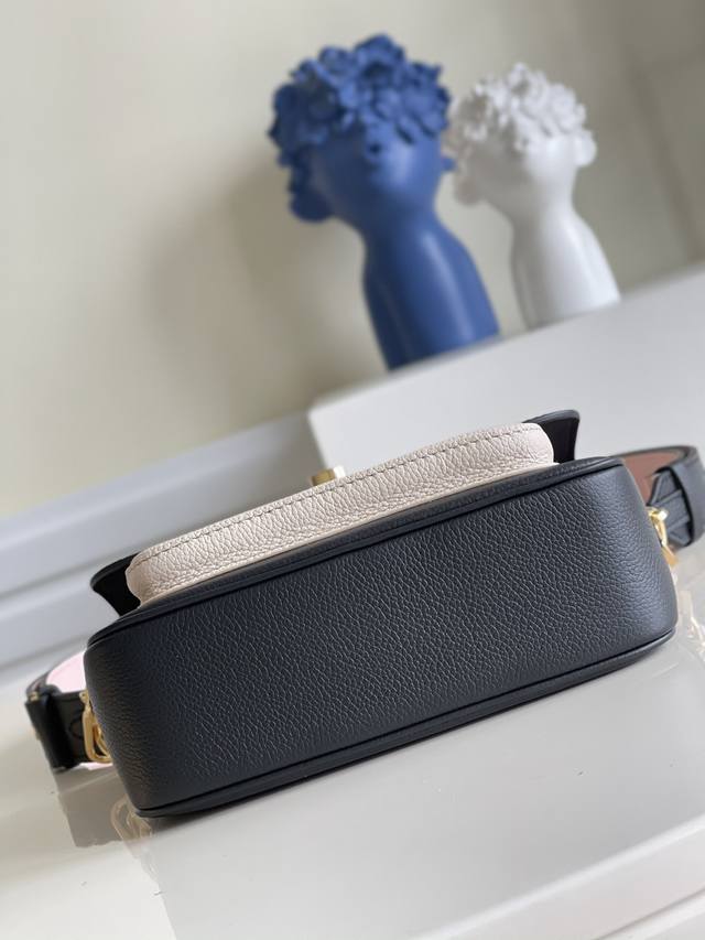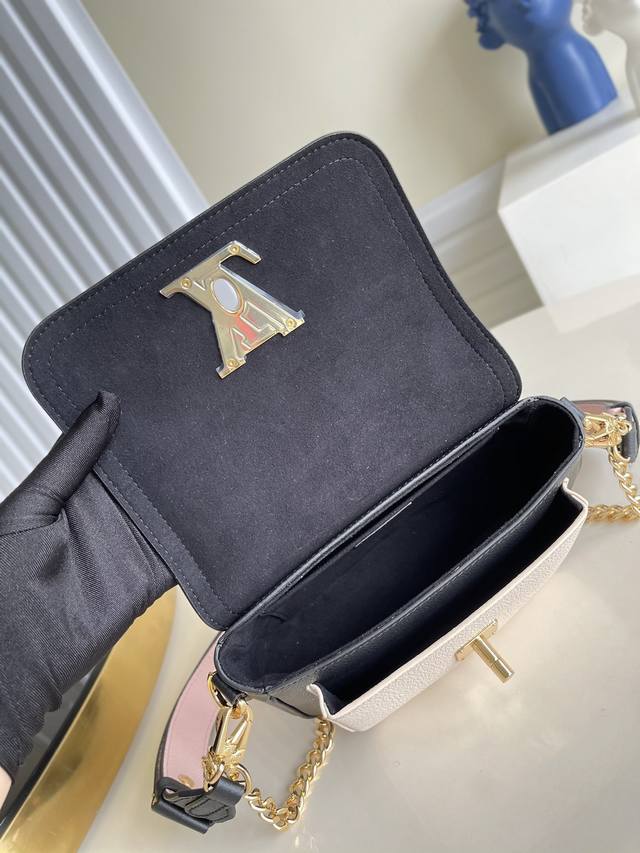 Top-quality original, original, and real-life photos of the M58557 black Lockme Tender handbag, crafted from soft, grained calfskin. Its metal D-ring allows for personalized accessories. A wide, removable and adjustable shoulder strap adds a practical detail to the traditional chain.