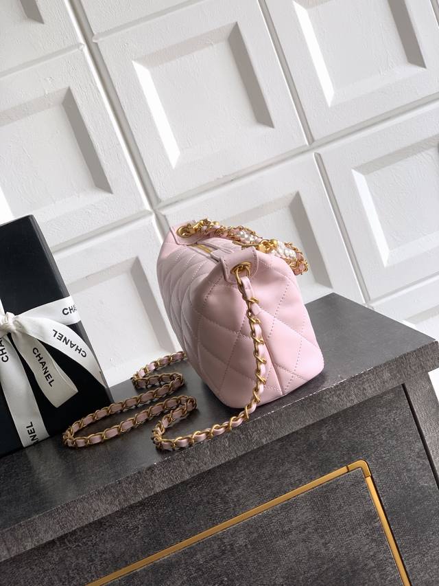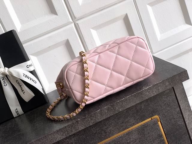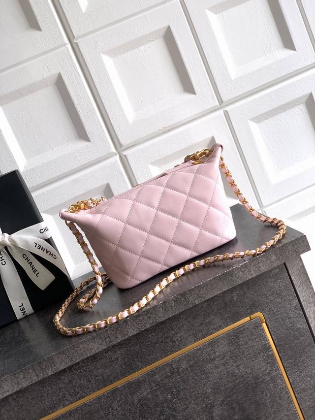 Top-quality original pink Ohanel 26C series pearl chain lunchbox bag. Classic quilted pattern, lambskin vintage metal chain embellished with pearls, elegant yet modern design. Hobo style, moderate capacity, can hold a phone and lipstick, perfect for commuting or going out! Adjustable shoulder strap, can be worn over the shoulder or crossbody. The pearl chain is super dynamic, adding a touch of elegance with every step. Black and gold color scheme, understated luxury, practical and fashionable. Dimensions: 13-23.5-7.5 cm. Comes with packaging.