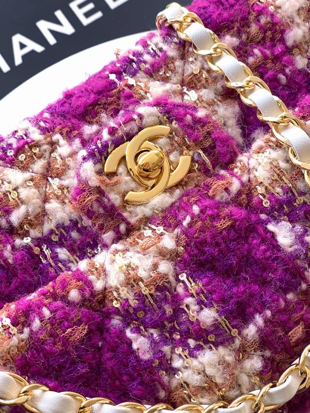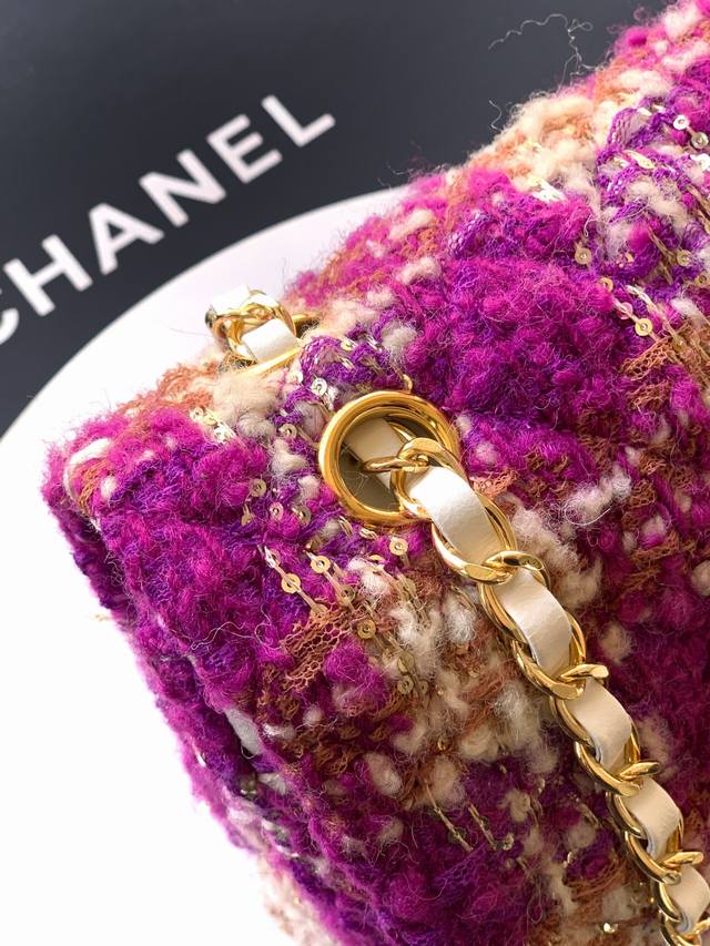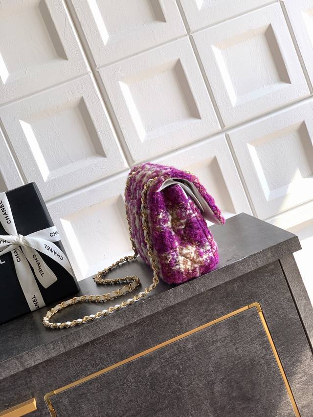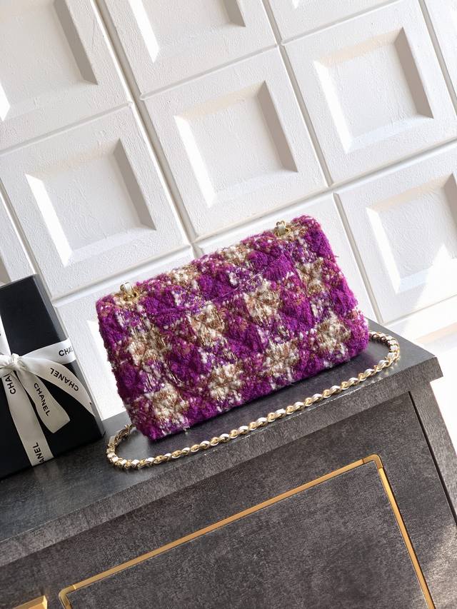 Top-quality original purple-pink Ohanel CF tweed bag is here! Size: *.*. Cotton fabric, you'll fall in love at first sight. The bag's color looks very clean, and compared to the leather CF, it's more youthful and versatile. High-value, timeless, and classic bag shape with subtle chain details! Unique yet not overly flashy! Size: 25cm DDD