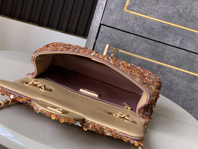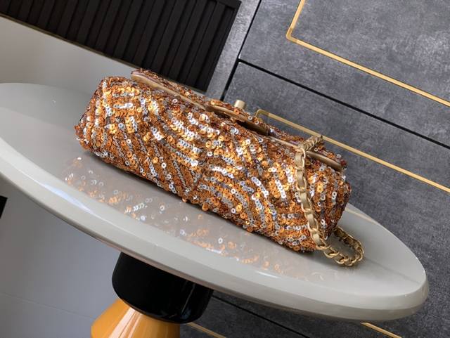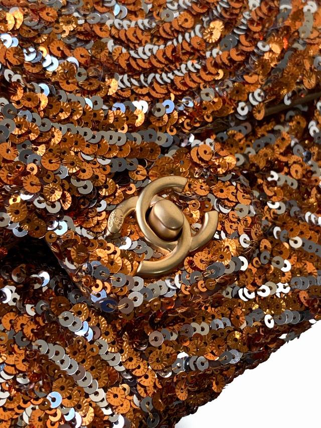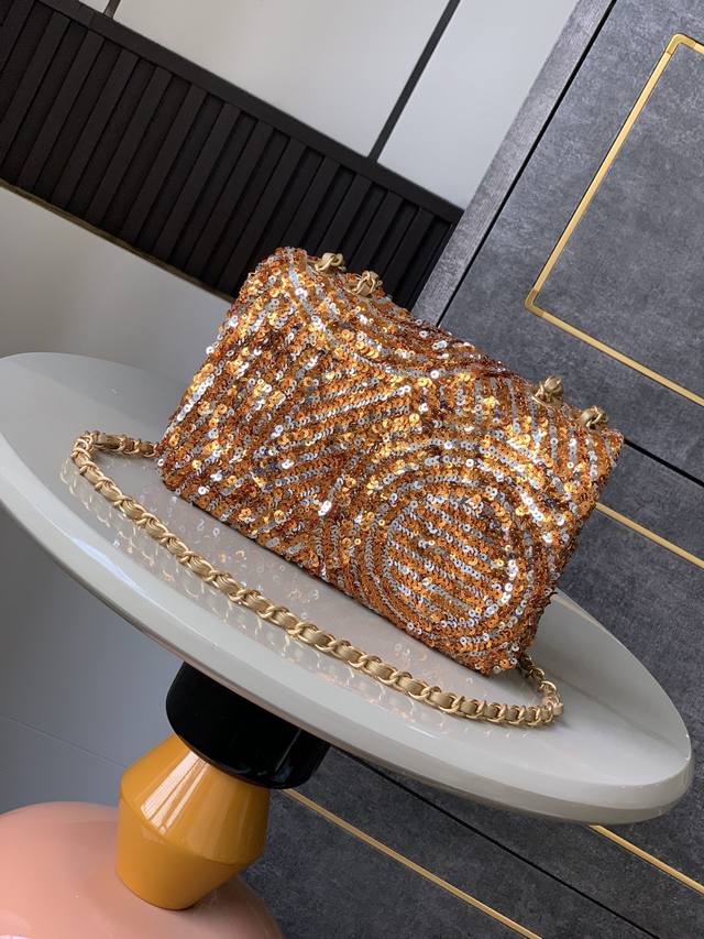 Top-quality original shipment! "Golden Snake Brings Luck" 6171Ohanel golden sunflower dense sequins, shaped like Cf super- shiny sequins, pre-order now! Autumn and winter filters, So Black, street-cool, the real thing is simply stunning. Super rare and popular sequins, super cost-effective, the most worthwhile bag of this season. The color and sequins are so glittering and charming, it simply amplifies its charm. Elegance and fashion are synonymous with it. It is also suitable as an evening bag. It is a bag that can be treasured for a lifetime. 20cm