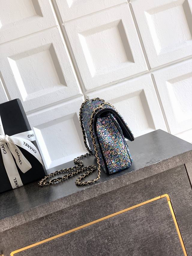 Top-quality original single iridescent diamond Ohanel 26C dense sequin, CF super sparkly diamond bag available for pre-order! Summer filter, So Black, super cool and eye-catching! The actual product is absolutely stunning! A super rare and popular diamond bag with excellent value for money. The most worthwhile bag to buy this season! The color blocking is dazzling and irresistible, amplifying its charm and elegance. Elegance, fashion, and trendiness are its hallmarks. It's also perfect as an evening bag. A bag you can cherish for a lifetime. 20cm DDD