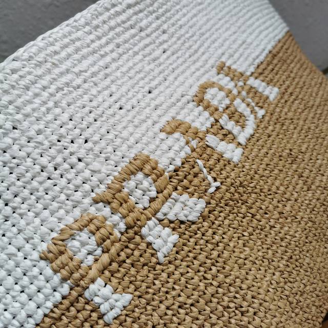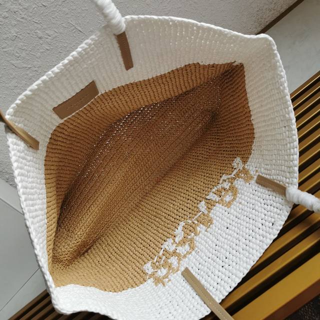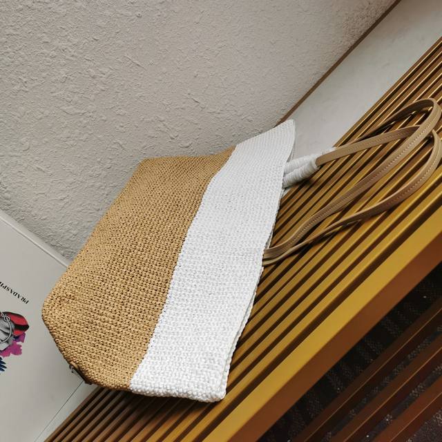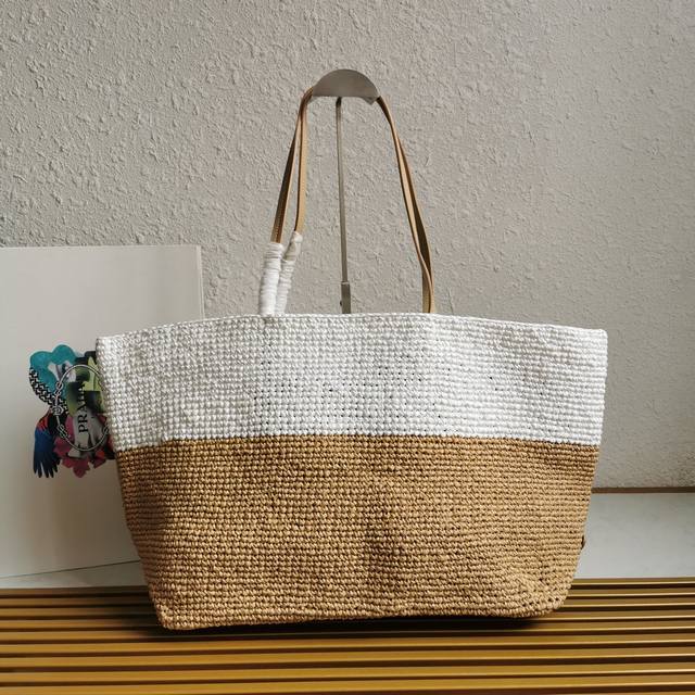 Top-quality original single-piece new fiber tote bag 1Bg442. This fiber tote bag is designed with imported raffia and is very handmade. Each bag is professionally handwoven with two colors in a patchwork style. Lightweight and spacious, it has a great summery style and looks beautiful with various outfits. It's perfect, so grab one now! Dimensions: Length 38cm x Height 31.5cm x Bottom 15cm.