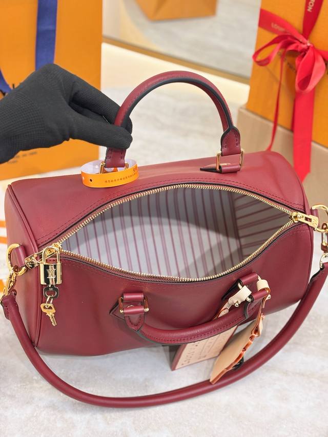 Top-quality Speedy Soft 30 handbag DDD M25766 DDD This Speedy Soft 30 is from the Travels With Grace Coddington collection, featuring richly colored cowhide leather with metal hardware and a whimsical cat-shaped key pouch. The detachable nameplate is printed with Grace Coddington's handwritten lettering. DDD Size: 30X21X17Cm DDD