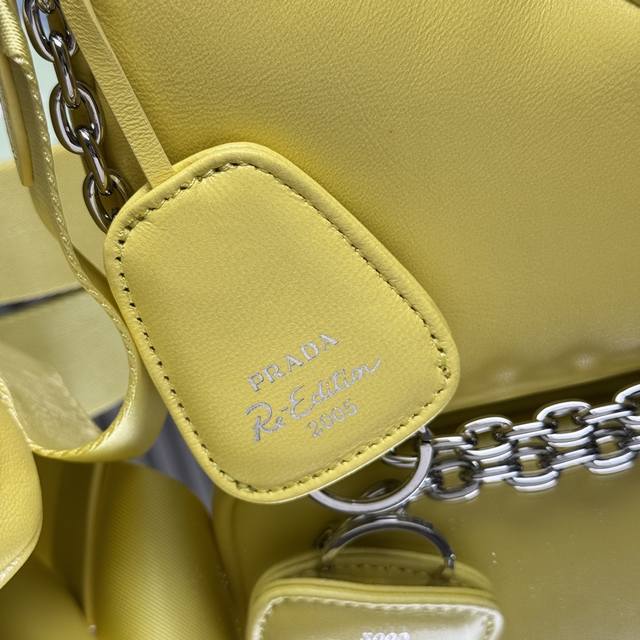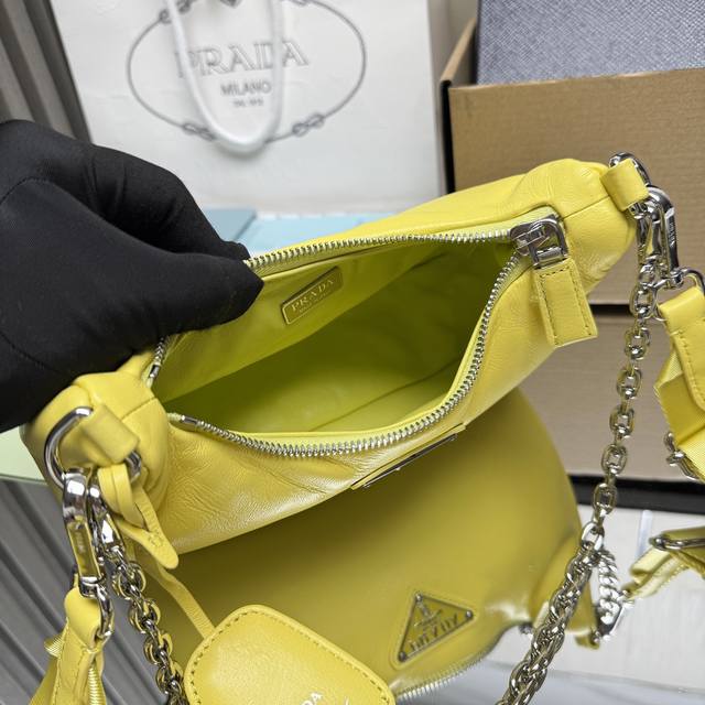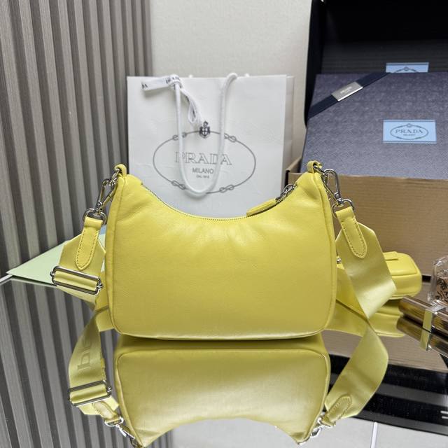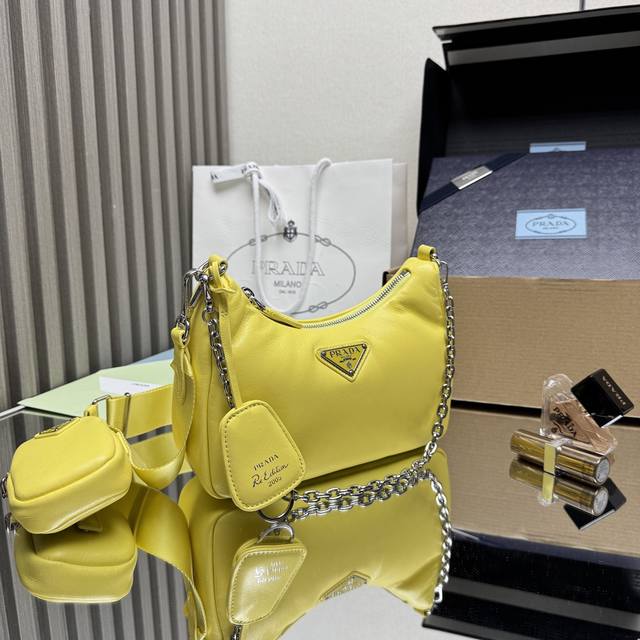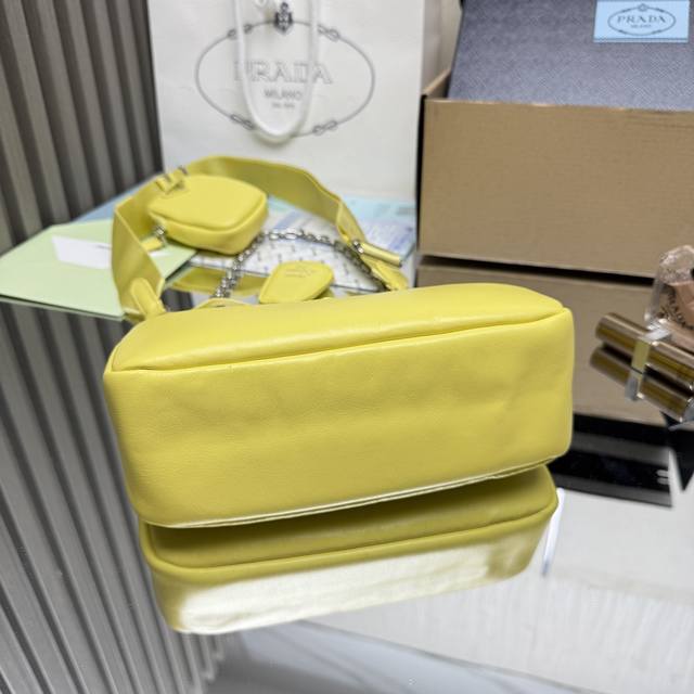 Top-Tier Original Lambskin 3-in-1 Bag 1Bh204 This 3-in-1 padded shoulder bag is crafted from soft lambskin, featuring a simple silhouette and a supple feel. A tonal triangle surrounds a contrasting lettered logo, creating a textured, three-dimensional effect that highlights the design's style. It comes with a detachable nylon long shoulder strap and a chain strap. I especially love the small pouch on the shoulder strap. It's so cute and incredibly soft to the touch, both practical and casual. Grab one now! Dimensions: Length 22cm x Height 18cm x Base 6.5cm DDD