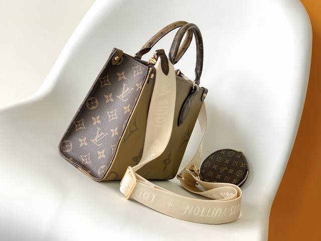 Top-tier original M46373 DDD This Onthego small handbag combines Monogram and Monogram Reverse canvas, adorned with the Monogram Giant pattern. The Toron handle and jacquard shoulder strap, decorated with the brand's logo, create a visual contrast. A detachable coin purse is perfect for storing coins or small items. Combining stylish elegance with versatility, it becomes an ideal everyday companion. 25.0 X 19.0 X 11.5 cm (Length X Height X Width) DDD