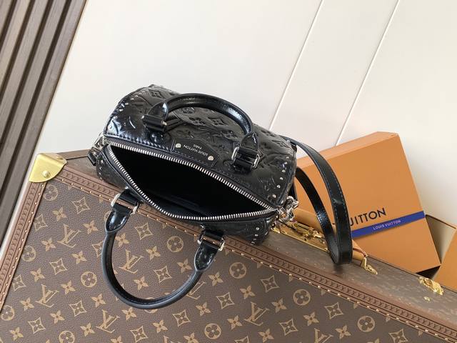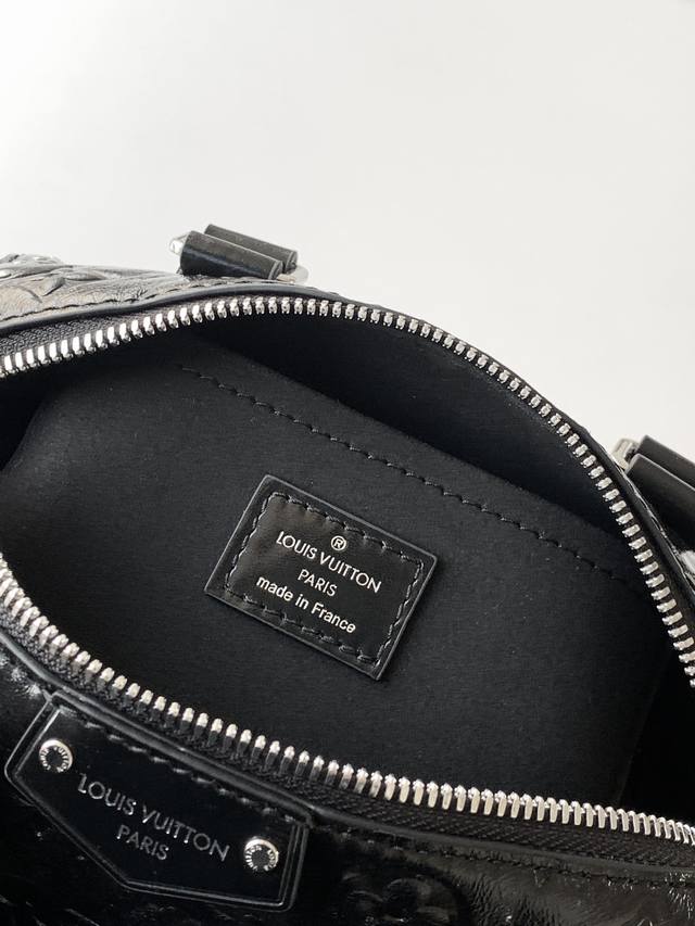 Top-tier original, serial number chip M27921 Black. This Speedy Trunk 20 handbag is a fresh interpretation of the brand's Monogram Saga logo, exuding a distinct rock 'n' roll vibe. Made of cowhide leather with trunk details, it undergoes multiple professional processes to present a unique retro texture. The shoulder strap and chain are detachable, allowing for crossbody, shoulder, or hand carry. Dimensions: 13.5 x 11 x 20.5 cm (H x W x Length). Features: Cowhide leather, cowhide trim, fabric lining, metal hardware, padlock, interior slip pocket. Shoulder strap: Detachable, adjustable. Strap half-length: 48.0 cm. Strap half-length adjustable to: 53.0 cm. Chain: Detachable. Chain half-length: 13.0 cm. Handles: Double handles.