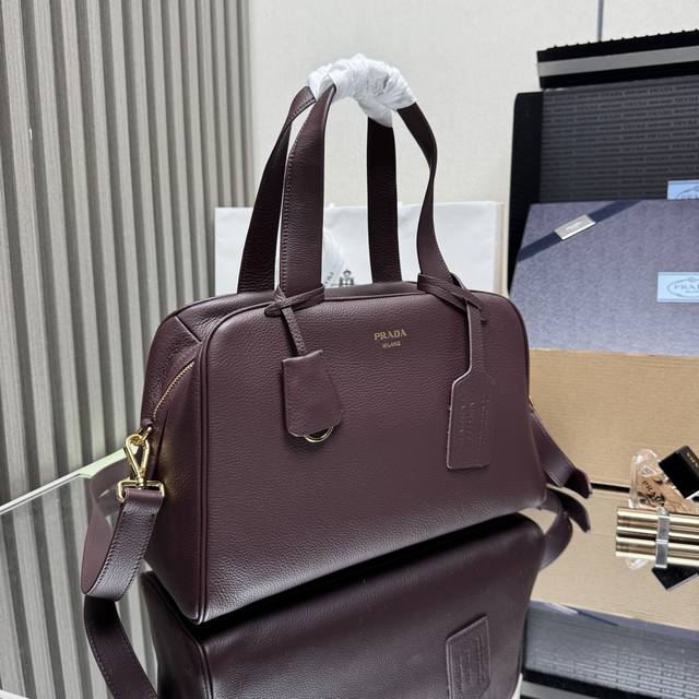 Top-tier original single item 1Bb148 This top-handle bag, crafted from natural grain leather, has been reinterpreted with a soft silhouette. It can be carried by hand or worn with a detachable shoulder strap and comes with two detachable tags. Metal hardware. Features an embossed logo on the front, a zip closure, two pockets (one zippered), and ample storage space. A timeless and popular style. Grab yours now! Dimensions: Length 33cm x Height 22cm x Base 14cm