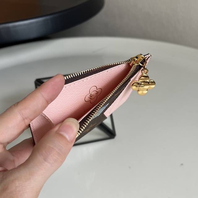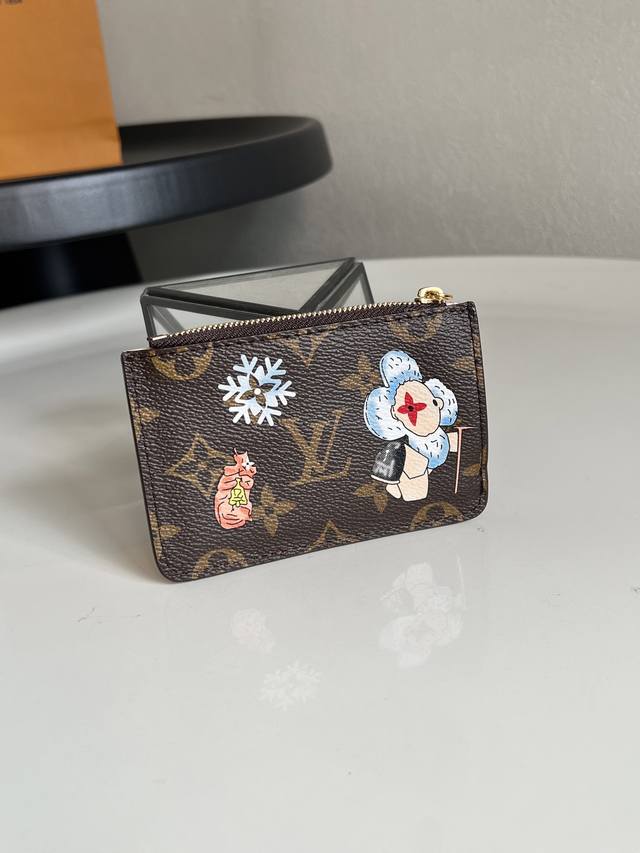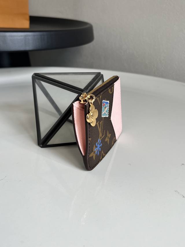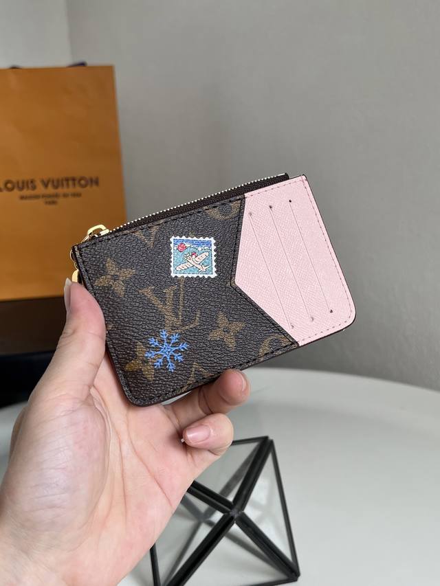Top-tier original single item M15333 Monogram Pink Christmas Edition (Chip Version) This Romy Ms card holder presents a playful new look from the Vivenne Wintery Travel series. Made of Monogram canvas with a leather lining, the zipper pull features the brand's mascot, Vivienne. It includes card slots, a zippered coin pocket, and a bill pocket. Dimensions: 8 x 0.8 x 12 cm (H x W x Length)