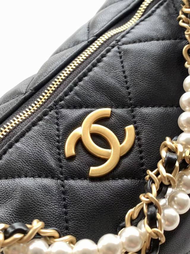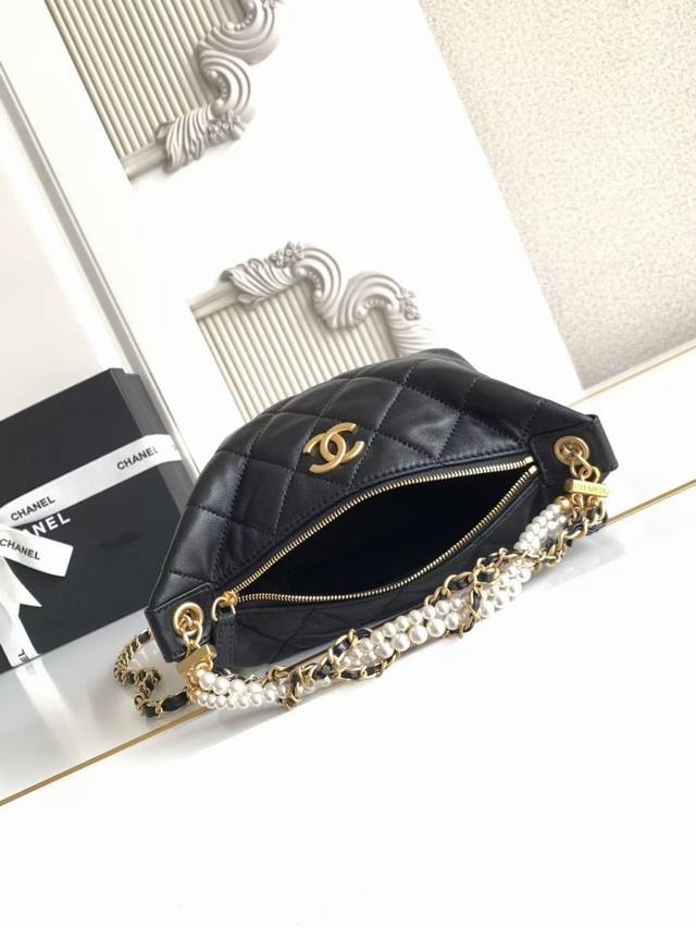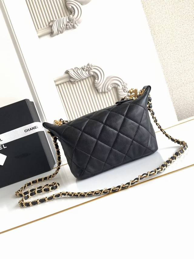 Top-tier original single item, style number As5898, 26C series pearl chain lunchbox bag. Features classic quilted pattern, lambskin vintage metal chain embellished with pearls, elegant yet modern design. Hobo style, moderate capacity, can hold a phone and lipstick, perfect for commuting or going out! Adjustable shoulder strap, can be worn over the shoulder or crossbody. The pearl chain is super dynamic, adding a touch of elegance with every step. Black and gold color scheme, understated luxury, practical and stylish. Dimensions: 13X23.5X7.5Cm.