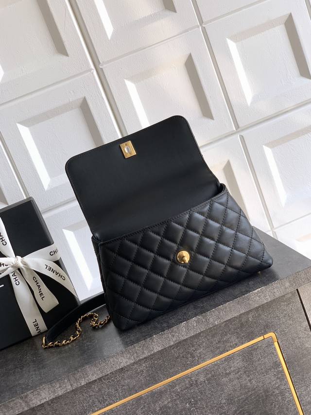 Top-tier original single, latest large size 23cm gold ring bag with Ohanel 25K gold diamond openwork handle! Classic yet fashionable series, hot-selling item! Cocohandle classic! Made of calfskin! Pure copper metal diamond handle design, glittering and super luxurious. This retro design style is simply irresistible, so beautiful~ Cute and also available in a mini version. Limited edition, super rare, the design is truly ingenious! The whole bag is luxurious, it looks so beautiful when carried! The feel is delicate, soft and comfortable, very durable, a very enduring and elegant bag~ Size "23cm DDD"