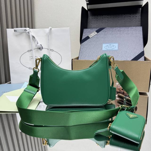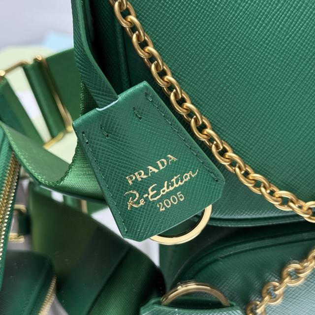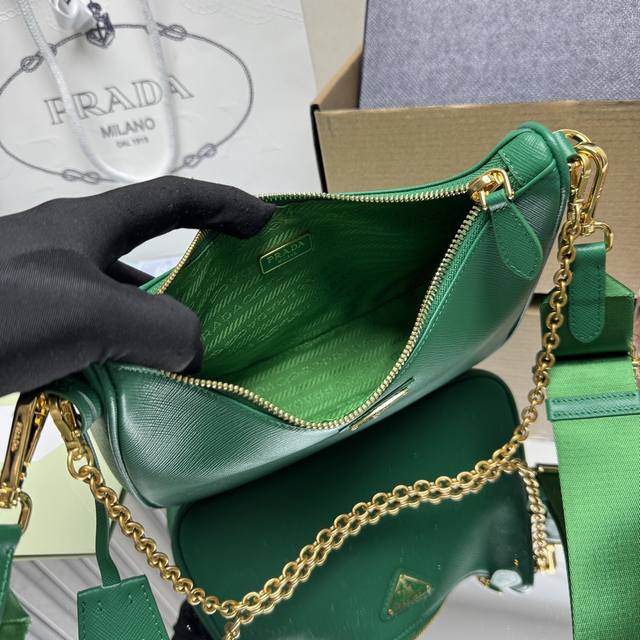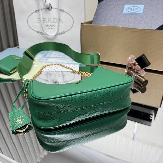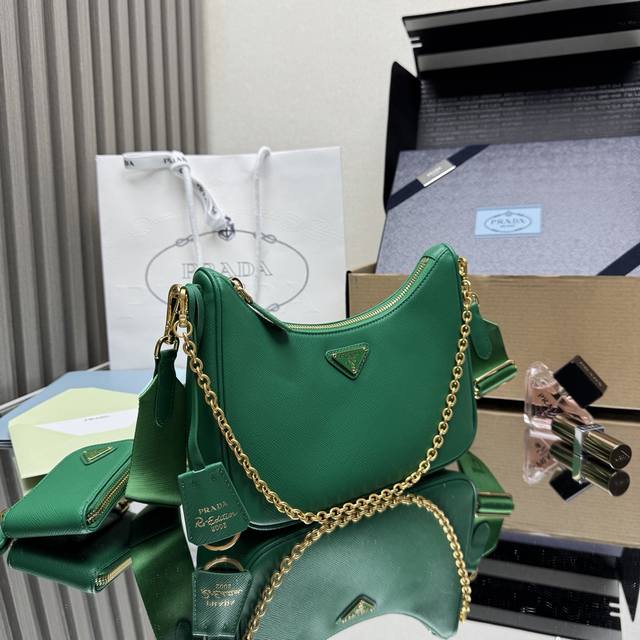 Top-tier original single new version hot-selling upgraded Baokuanqnylon Hobo handbag/shoulder bag 1Bh204 Original cross-grain detachable p brand Re-Edition 2005 Saffiano leather nameplate with key ring detachable adjustable logo fabric shoulder strap detachable zippered leather pouch detachable metal chain shoulder strap top zip closure nylon lining enamel-coated triangular metal logo Dimensions: Length 22 x Height 18 x Width 6.5 cm! DDD