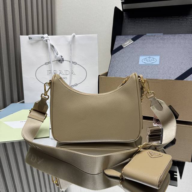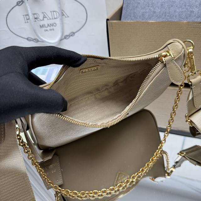 Top-tier original single new version hot-selling upgraded Baokuanqnylon Hobo handbag/shoulder bag 1Bh204 Original cross-grain detachable p brand Re-Edition 2005 Saffiano leather nameplate with key ring detachable adjustable logo fabric shoulder strap detachable zippered leather pouch detachable metal chain shoulder strap top zip closure nylon lining enamel-coated triangular metal logo Dimensions: Length 22 x Height 18 x Width 6.5 cm! DDD