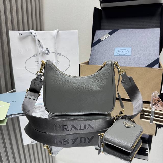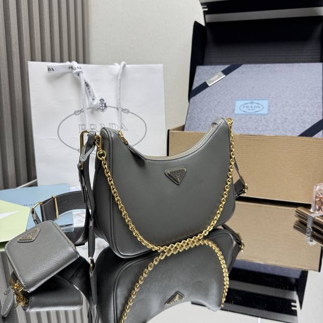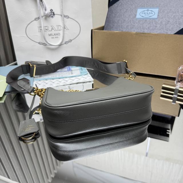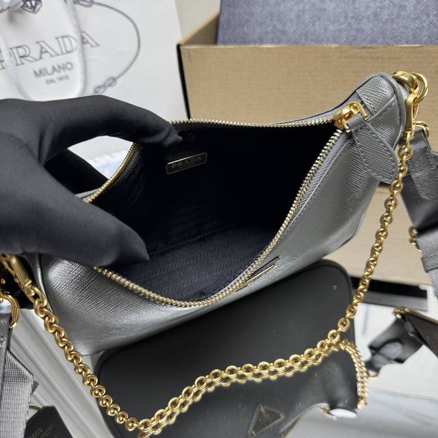 Top-tier original single new version hot-selling upgraded Baokuanqnylon Hobo handbag/shoulder bag 1Bh204 Original cross-grain detachable p brand Re-Edition 2005 Saffiano leather nameplate with key ring detachable adjustable logo fabric shoulder strap detachable zippered leather pouch detachable metal chain shoulder strap top zip closure nylon lining enamel-coated triangular metal logo Dimensions: Length 22 x Height 18 x Width 6.5 cm! DDD