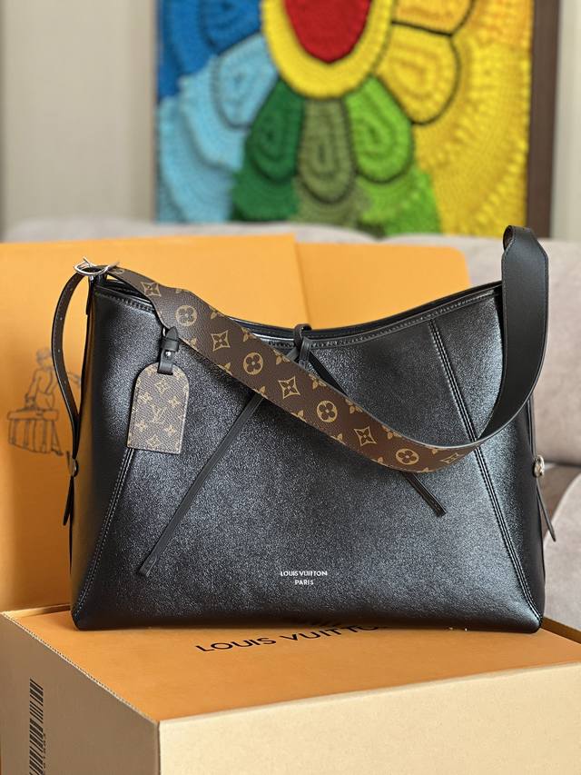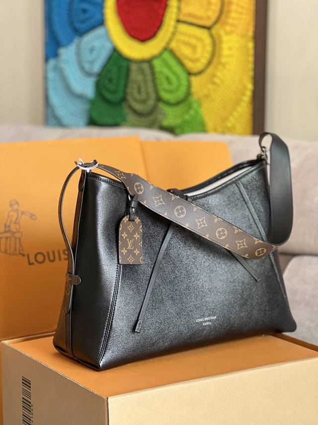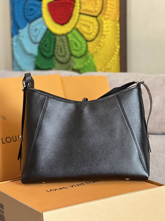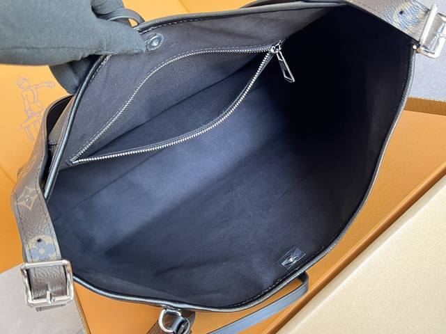 Top-tier original single-piece, boutique model M25143, original leather Carryall Dark medium handbag. Crafted from supple lambskin, this stylish and relaxed bag adds a striking touch to spring/summer runway looks. Polished metal hardware complements the soft, slightly wrinkled texture. Ample space accommodates various everyday essentials, making it a perfect travel companion. Dimensions: 39 x 30 x 15 cm (Length x Height x Width)