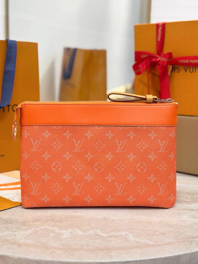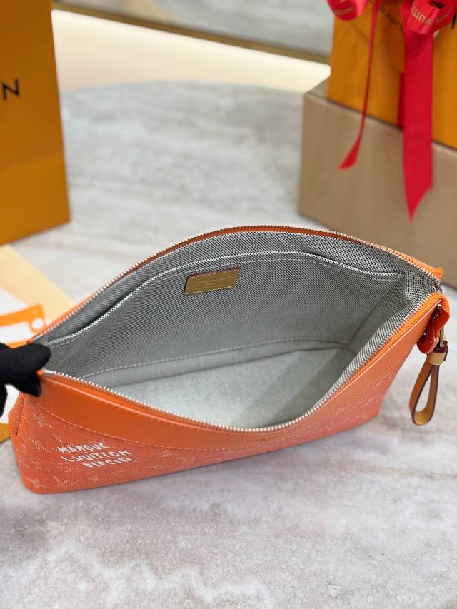 Top-tier replica M12665 Orange Pochette Voyage Souple Clutch. This Pochette Voyage Souple clutch is crafted from soft Monogram Eclipse coated canvas, featuring rounded lines that echo the classic Pochette Voyage clutch design for a comfortable and convenient carrying experience. Its slim profile includes a zippered compartment and a magnetic snap back pocket. Size: 32 x 21 x 8 cm.