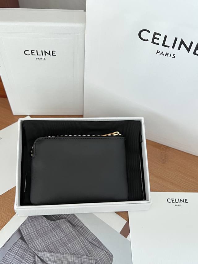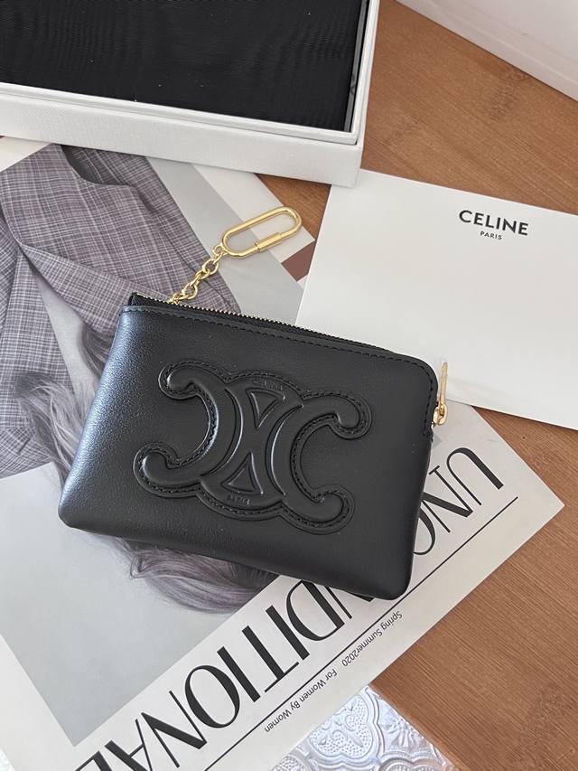 Triomphe smooth cowhide leather coin and card holder
