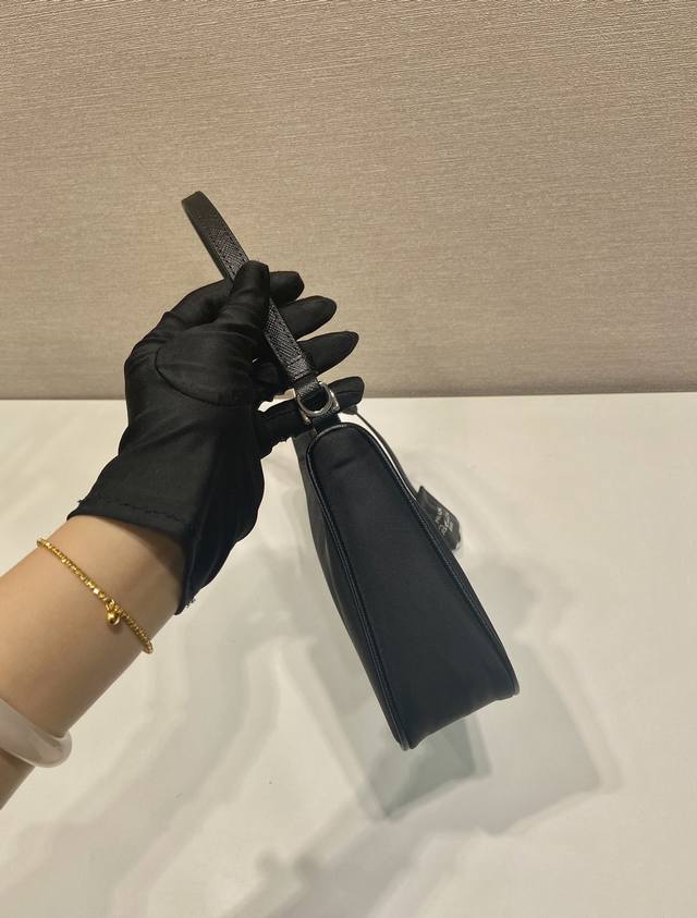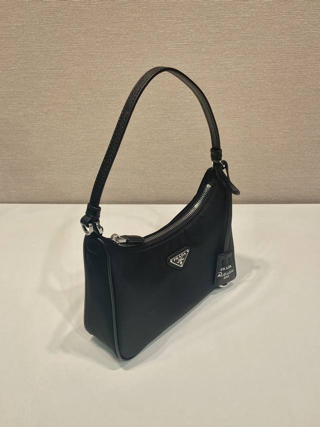 This Re-Edition 2005 handbag combines versatile design with classic details. Crafted from recycled nylon, it features elegant gold-plated hardware. The interior zipper closure and leather handles allow for both hand and shoulder carry, making it incredibly versatile and a timeless favorite.